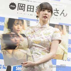 岡田にとって4冊目の写真集となる本作。前作から8ヶ月ぶりの撮影で、ロケ地は台湾。一緒に台湾を旅しているような気分を楽しめる自然体なカットや、恋人目線を味わえる近距離のカット、バスタイムの他、水着やランジェリー、チャイナドレス姿も披露している。この日、岡田はスリットから美脚をのぞかせたチャイナドレス姿で登場。会場に設置されたレジカウンターでは、エプロンを身に着け、“一日店長”として写真集を手渡しするポーズなども披露した。