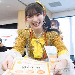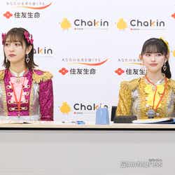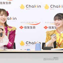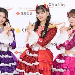 この日の超ときめき◆宣伝部は、同社の商品を紹介する“Chakin 宣伝部”新入職員として登場。なおメンバーの吉川ひよりは、喉の不調により欠席した。CM撮影を振り返り、坂井は「最初に出社するシーンを撮ったんですけど、その時にキラキラの衣装で、他の方はスーツを着ていたので、私がすごく目立ってしまっていて、いいのかなと思ったんですけれども(笑)、すごく楽しい撮影だったなと思います」とにっこり。「現場にいたスタッフの皆さんも社員の方も、すごく場を盛り上げてくださって、なんか人気者になった気分でした」と嬉しそうだった。
