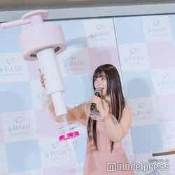 ヘアケア製品のブランドアンバサダーに就任したつきはミニ丈のピンクワンピース姿で登場し、美しい脚を披露。衣装について「ブランドのカラーに合わせて、今日はピンクにまとめてきました。キュートな感じに」と笑顔を見せた。美容に関するルーティンを聞かれたつきは「本当にこれは全世界の人におすすめするんですけど、トマトジュースを飲む」と紹介。続けて「トマトジュースって美白にも良いし、肌にもすごい良いので。朝に飲むと、次にご飯を食べた時のいろんな防止だったりとか、健康面でも良いので、朝イチにトマトジュースを1杯飲むのが、私のモーニングルーティン」と語った。