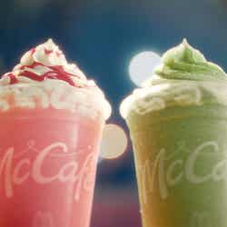 このたび開始する“寄り道マック”には、仕事帰りや買い物帰り、特に予定はないけれど、なんとなくまっすぐ家に帰るのが寂しいときなど、日常の中でマクドナルドにふらっと寄り道して、マクドナルドならではのフラッペやスイーツを楽しんでほしいという想いを込められており、その第1弾として、春にぴったりで華やかな3商品が期間限定で登場する。新商品の「いちご練乳フラッペ」は爽やかなストロベリーの味わいと、ミルキーな練乳のやさしい甘さが絶妙にマッチした、見た目にもキュートな春のフラッペ。「宇治抹茶フラッペ」は宇治抹茶を使用した抹茶パウダーと口当たりのよい牛乳を合わせ、やさしい甘みとコクのある和風テイストのフラッペとなっている。また、「マカロン ピーチ&ピーチ」は、アーモンドが練りこまれたサクふわ生地に、黄桃と白桃の2種類の果汁を使用したフィリングをサンドしたマカロンとなっている。春らしい見た目と味わいのフラッペ・マカロン今だけ期間限定(※「宇治抹茶フラッペ」はMcCafé by Barista店舗ではレギュラー商品として販売)で楽しむことができる。