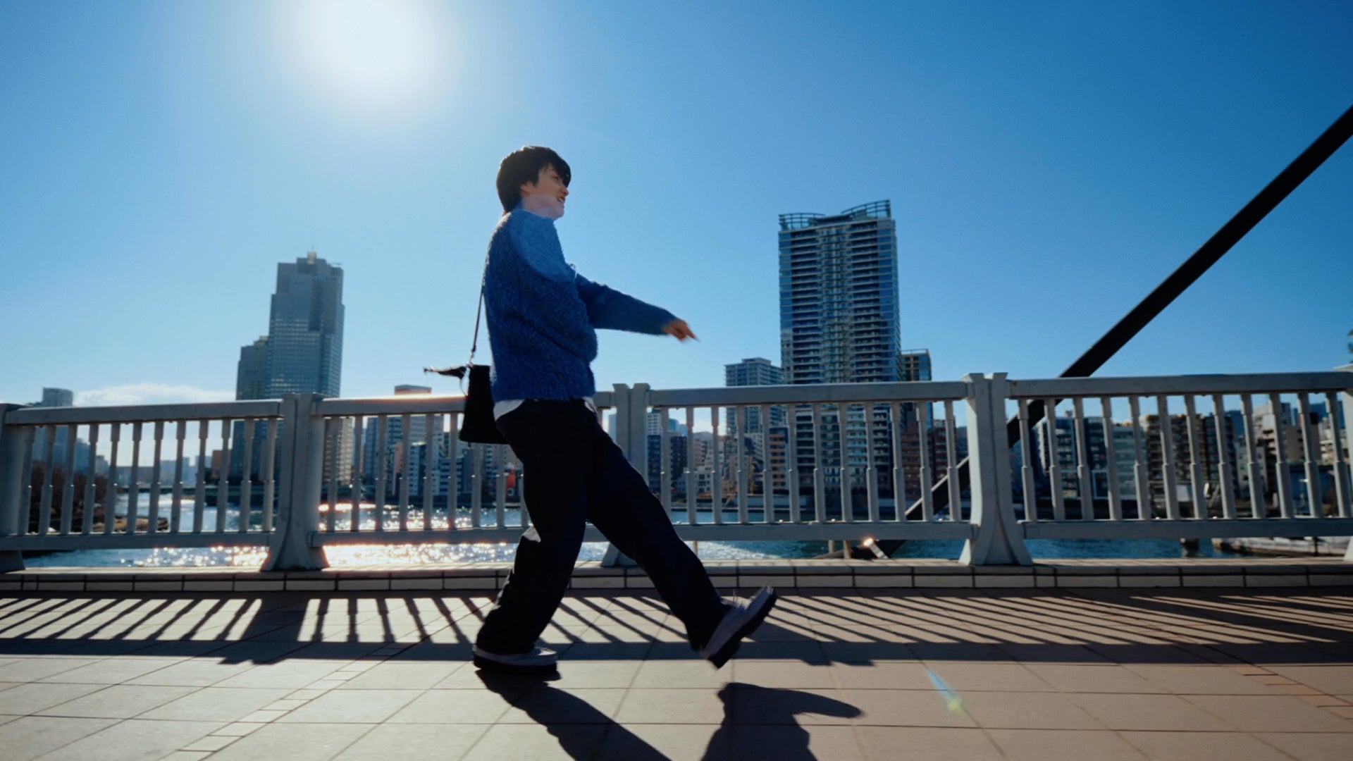 JUNON(ジュノン)の撮影は、CM出演決定のメッセージを見た瞬間、驚きの表情を浮かべるカットからスタート。当日は風が強く、何度かやんだ瞬間を狙ってカメラを回すものの、途中で突然強い風が吹くことがあり、なかなかスムーズに撮影が進まなかった。風を浴びながらも集中力をキープし、試行錯誤を繰り返す中で迎えた13テイク目。風がピタリとやんだ絶妙のタイミングで撮影が再開し、そのテイクがOKに。JUNONもほっとした表情を浮かべて、粘り強くベストショットを追求した制作チームと一緒に喜びを分かち合っていた。JUNONが橋の上を歩きながら、軽やかにダンスを披露するシーンでは、歩いては立ち止まり、また歩きながら踊るという難易度の高い振り付けに挑戦。リズムに乗りながら、足元のバランスも取る動きは一筋縄ではいかず、思わず「あーあっ!」「惜しい!」と声を上げることも。しかし、その悔しさをバネに、さらに集中力を高めて臨むと、完璧に踊り切り、さらに背後から美しい太陽の光が差し込んでJUNONのシルエットが際立つ最高の映像となった。撮影した素材を確認したスタッフからも、「これはカッコいい!」と絶賛する声が次々と上がった。