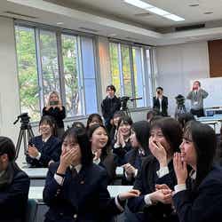 新年度が始まり、新しい仲間を迎えてちょっぴりワクワクする季節。あたたかい春⾵が、新たなスタートをやさしく後押ししてくれるような⽇、「ホームページの写真撮るから放課後集まってね〜」と伝えられ教室に集められたダンス部の⽣徒たち。先⽣に熱い視線が集まる中、先⽣が⽣徒たちのためにサプライズで準備していたボードとともに、「東京ガールズコレクションが⾹川であります。そのイベントでLDHのアーティストが出演するんですけども…そのバックダンサーとして皆さんが⼀緒に踊ることが決定しました!」と発表されると、想像していなかったまさかの展開に、⽣徒たちからは歓声が。WOLF HOWL HARMONYからのサプライズビデオメッセージを受けて、⽣徒たちを代表して部⻑の⻆宮⼼優さんは、「こんなに⼤きな舞台で踊れることが光栄です。会場のみんなを驚かせられるような圧倒的なステージを作るために、頑張りたいです!」と、部員の池本⽇鞠さんは「今までこんなに⼤きい舞台で踊ったことがないので、すごく嬉しいです。これからいっぱい練習して頑張ります!」と、喜びや意気込みを語り、先⽣より「前⽇や本番はテスト期間中でもあるけど、どっちも⼀⽣懸命頑張ってほしいですし、私はみんなならできると思っています!」と改めてエールが送られた。