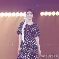 4月23日、女性ファッション誌「Ray」(発行元:株式会社DONUTS/発売元:株式会社主婦の友社)の専属モデル就任が発表された本田。シルバーに輝く花柄が散りばめられたロングドレスを着こなし、颯爽と登場。満面の笑みを浮かべ「Ray」モデルとしての初ランウェイを飾った。MCの品川庄司・庄司智春から「Ray」モデルに就任してランウェイを歩いた感想を聞かれると「夢のような空間でした。本当に今私緊張しているんです」とコメント。「もうまだまだ未熟なんですけど、日々の撮影を通して、経験とか学びを大切にしながら、感謝を忘れずに『Ray』の皆様とともに成長していけたらなと思っています」と丁寧に挨拶していた。