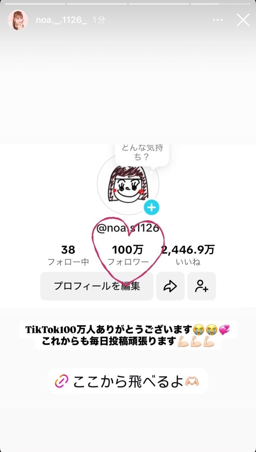 タレントの杉浦太陽と辻希美の長女・希空(のあ)が4月27日、自身のTikTokを更新。フォロワーが100万人を達成したことを報告した。