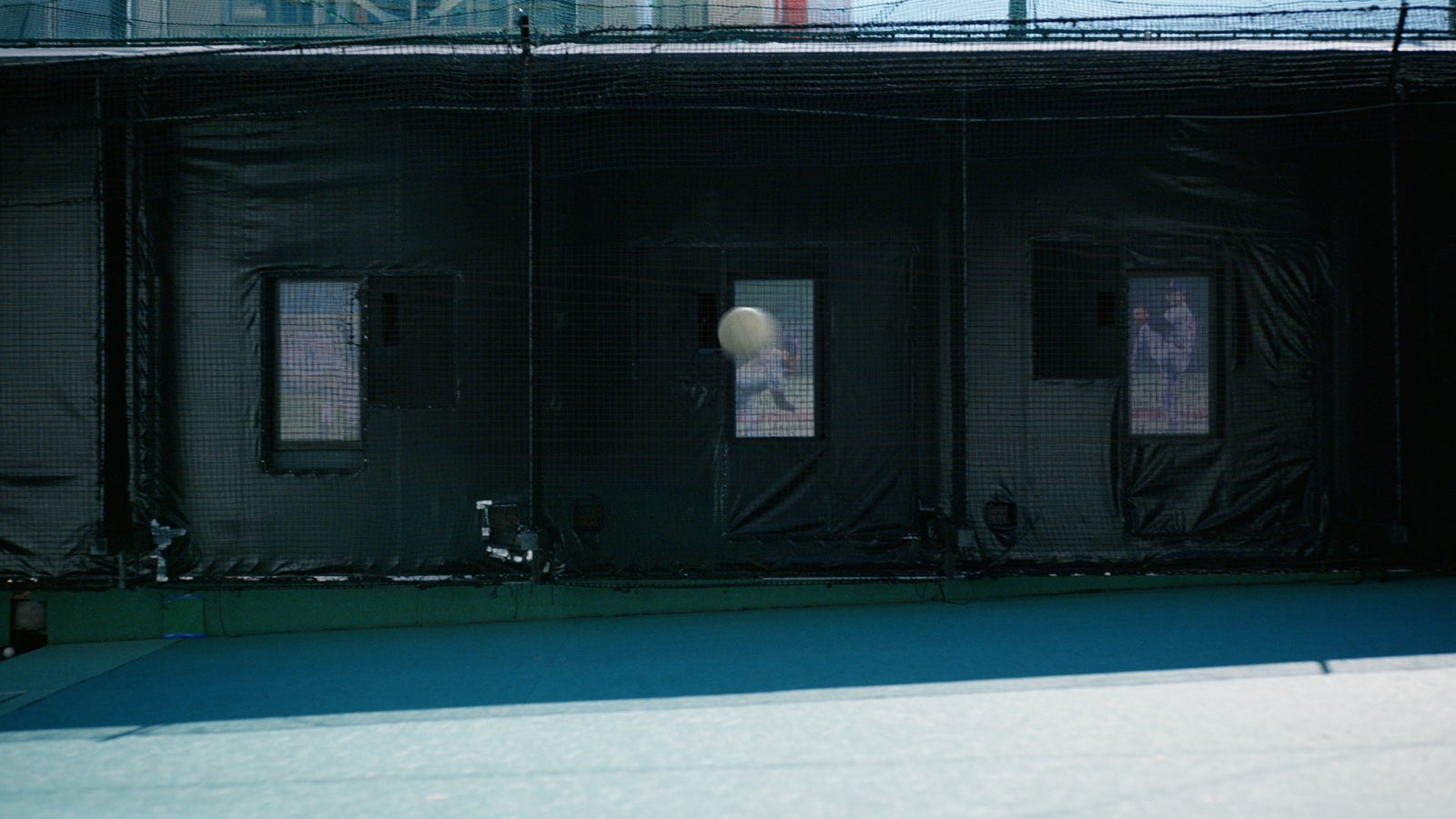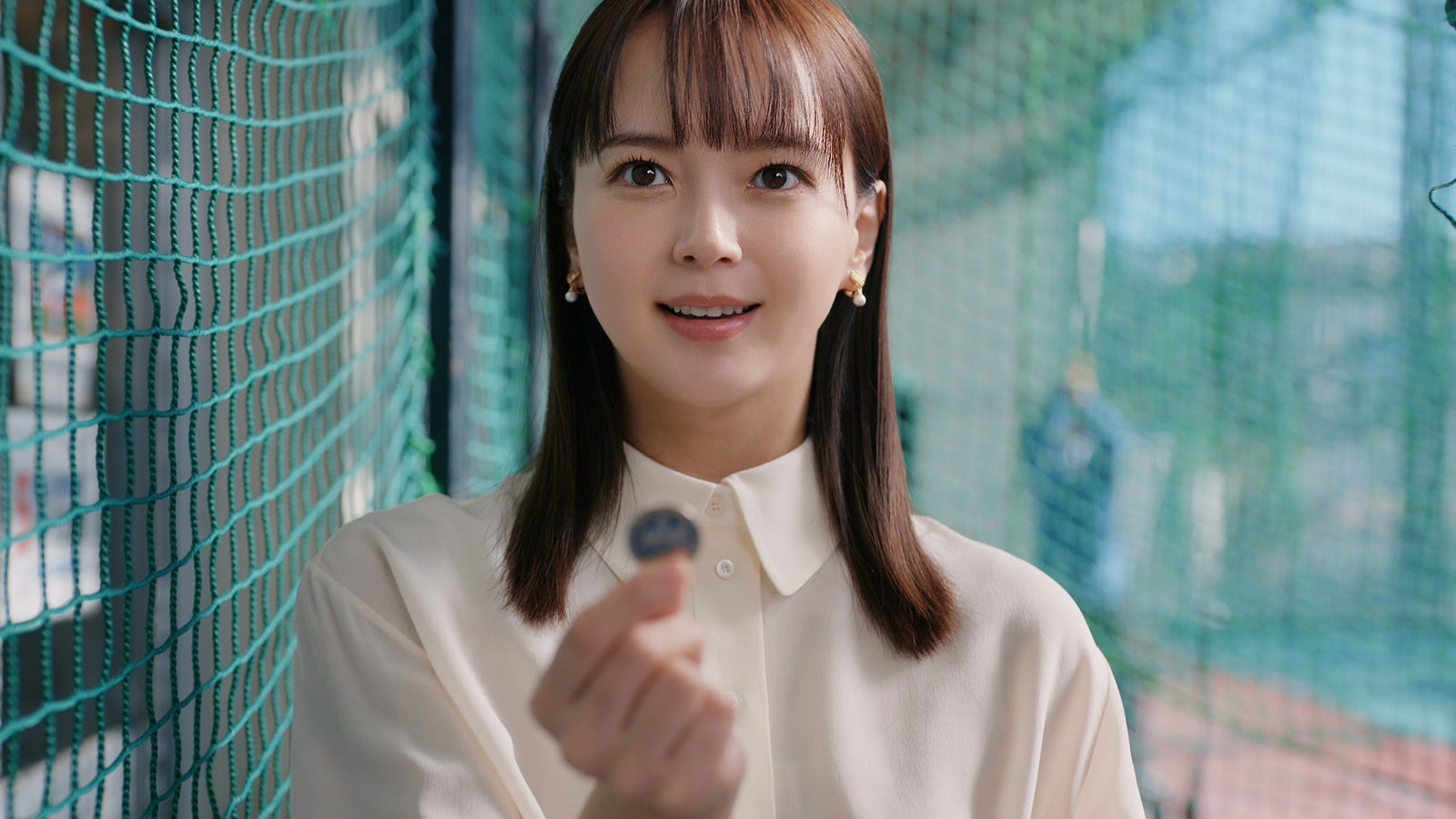 撮影現場に到着し、監督との打ち合わせを始めた多部は、バッティングセンターの雰囲気にドキドキした表情を見せながら「バットもほとんど握ったことがないんです」と告白。「野球に詳しい女性コーチがついて練習する時間を確保するから大丈夫ですよ」と聞いて、ホッとした様子で笑顔で演技の方向性について話を進めた。撮影当日は肌寒い天候ながら晴天に恵まれ、明るい陽が射すバッターボックスに案内された多部は、コーチのレクチャーを受けながら真剣な表情で素振りを繰り返し、撮影に向けてバッティング練習に励んでいた。入念な練習を終え、いよいよ撮影がスタート。「よし!」と気合いを入れながらも「できるかな?」と不安げな表情の多部を気遣い、監督は「振りやすいようにバットを短めに持ってもいいですよ」と声をかけるが、多部は「大丈夫です」と笑顔で答え、ホームランを狙う本気の構えで本番に臨む。直前にバットの握り方からレクチャーを受けたばかりとは思えない多部のパワフルなフルスイングに、周囲からは「おお~」というどよめきも。さらに長打を狙えるフォームをマスターした多部は、笑顔で「ホームラン打ちます(笑)!」と宣言し、現場を盛り上げていた。