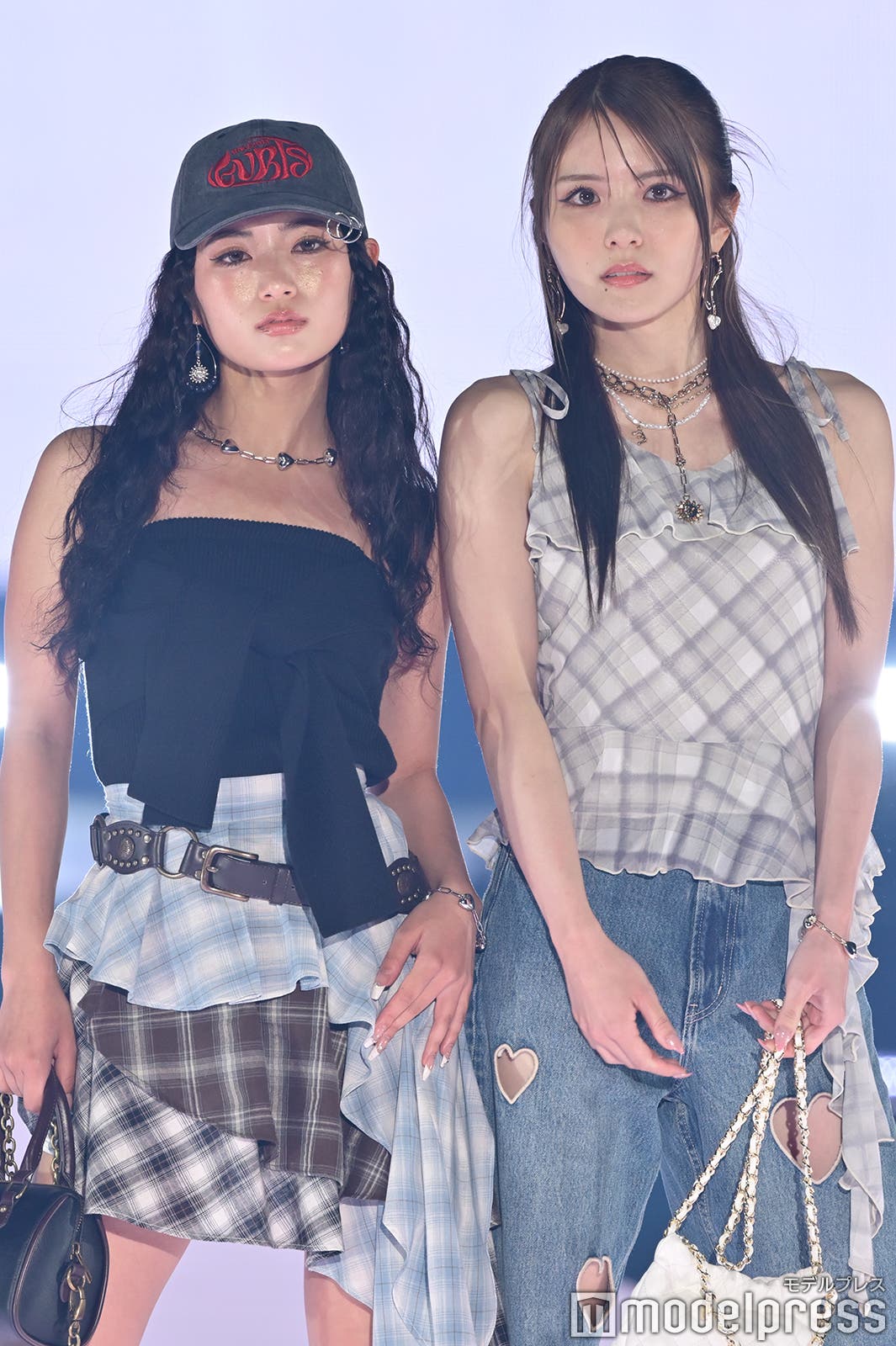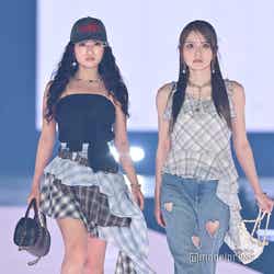 moxymill・NONA&RIO(北里理桜)、夏っぽファッションで登場 チェックのリンクコーデ【GirlsAward 2025SS】