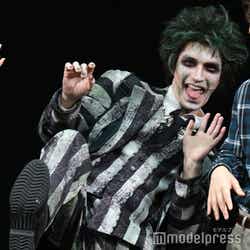 本作は、「チャーリーとチョコレート工場」「スウィーニー・トッド」などで知られるティム・バートン監督の1988年の映画作品を原作としたミュージカル作品。コミカルなストーリーやイリュージョンも取り入れた演出、卓越したセンスの衣裳・メイク・美術、耳に残るキャッチーな楽曲が話題となり、世界中でブームを巻き起こした。そんなヒット作を、2023年に主演・ジェシー、演出・福田氏のもと日本初上演。笑いあり感動ありのエンターテインメント作品として好評を呼び、今回満を持して帰ってきた。ジェシーは、死後の世界の厄介者であるバイオエクソシストのビートルジュースを演じる。(modelpress編集部)