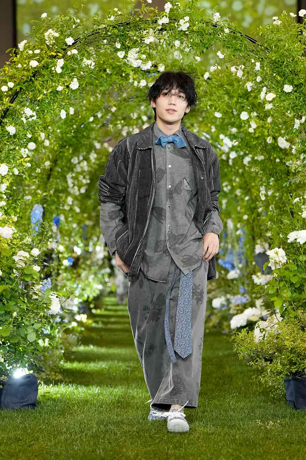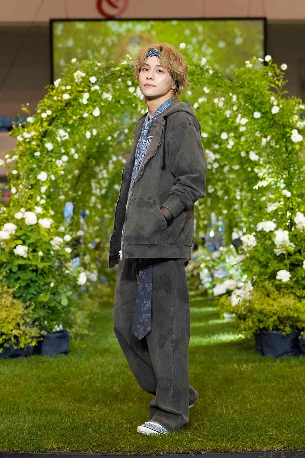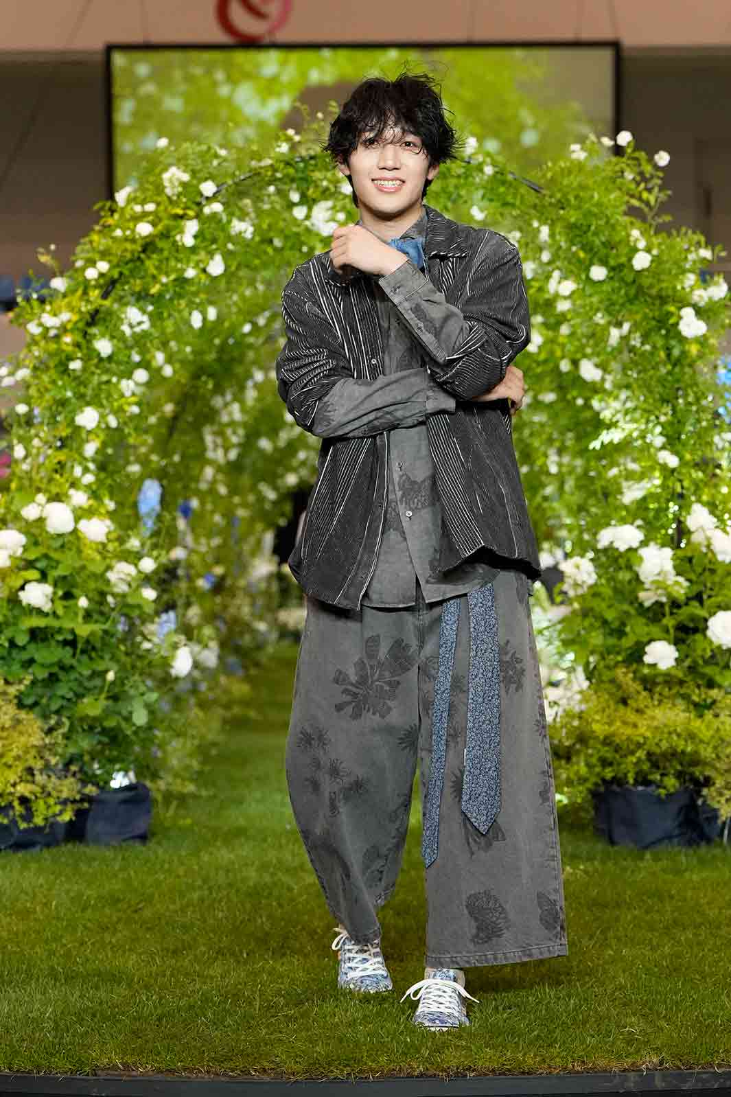 大久保は、「かっこよく歩きたいと思っていたのですが、ランウェイのばらの香りがとてもいい香りで気持ちよく歩けました!デニムは衣装でもよく着ますが、キラキラしたデニムは中々ないのでこれからプライベートでも着たいと思いました!」とコメント。FUKUYAMA original collectionに出演した山下幸輝(WILD BLUE)は、衣装のポイントを聞かれると「アウターとパンツがセットアップで着心地が良くて、小物や靴がペイズリー柄でメンバー全員合わせました」と衣装のポイントを語り、「おじいちゃん、おばあちゃんが広島で、今日も見に来てくれています!緊張するけど晴れ姿をみせられて嬉しいです!」と語ると会場内で手を振る祖父、祖母がカメラで抜かれ、恥ずかしがる一面もあった。