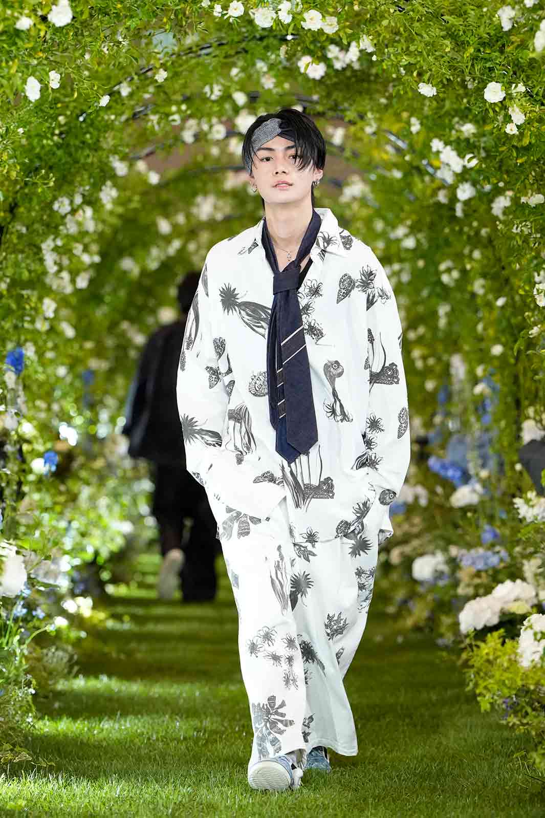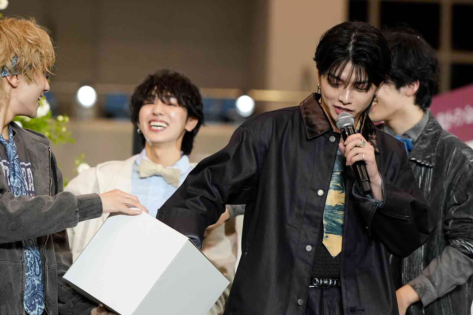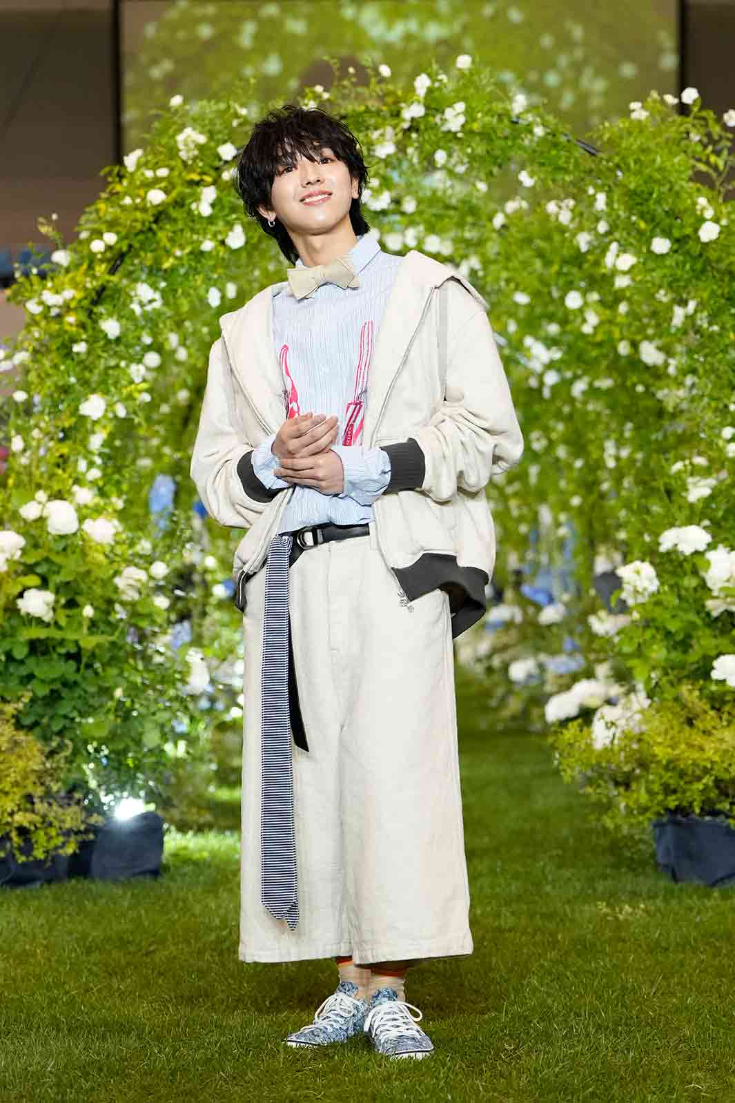 大久保は、「かっこよく歩きたいと思っていたのですが、ランウェイのばらの香りがとてもいい香りで気持ちよく歩けました!デニムは衣装でもよく着ますが、キラキラしたデニムは中々ないのでこれからプライベートでも着たいと思いました!」とコメント。FUKUYAMA original collectionに出演した山下幸輝(WILD BLUE)は、衣装のポイントを聞かれると「アウターとパンツがセットアップで着心地が良くて、小物や靴がペイズリー柄でメンバー全員合わせました」と衣装のポイントを語り、「おじいちゃん、おばあちゃんが広島で、今日も見に来てくれています!緊張するけど晴れ姿をみせられて嬉しいです!」と語ると会場内で手を振る祖父、祖母がカメラで抜かれ、恥ずかしがる一面もあった。