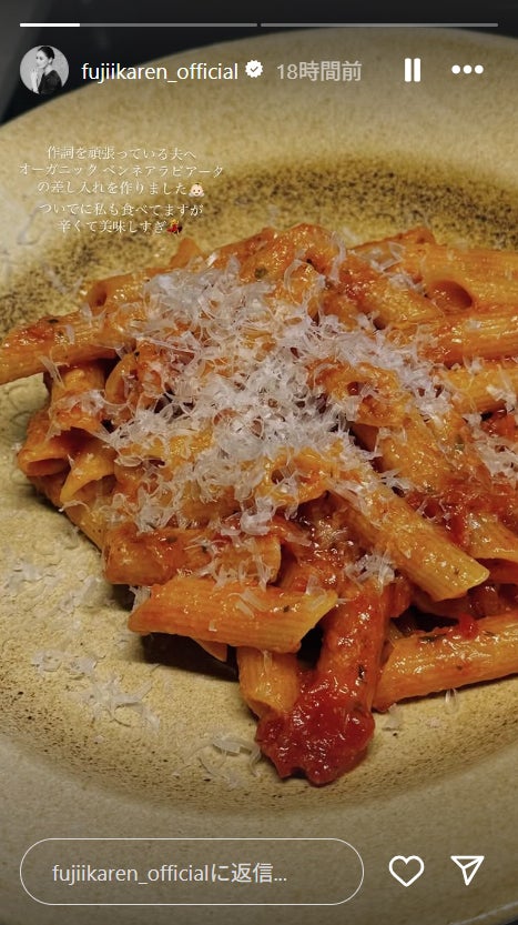 藤井は「作詞を頑張っている夫へオーガニックペンネアラビアータの差し入れを作りました」とつづり、夫のために手作りした料理を公開。オシャレな皿にパスタ、削ったチーズが乗っており「ついでに私も食べてますが辛くて美味しすぎ」と味についてもつづっていた。この投稿にファンからは「お店のクオリティ」「盛り付けがおしゃれ」「愛がこもっていて素敵」「めっちゃ美味しそう」と反響が寄せられている。(modelpress編集部)