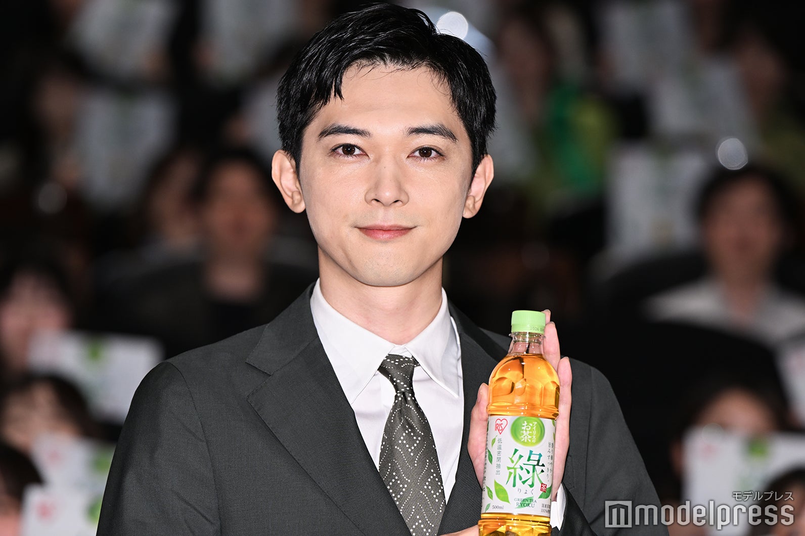 「綠(りょく)」の試飲では、様々な角度へ笑顔を決めて、ボトルを見つめるなどサービス精神旺盛な姿を見せた吉沢。味の感想を求められると「美味しい。本当に飲みやすいんですよ」「朝一がすごくお勧めだと思います」とアピールした。