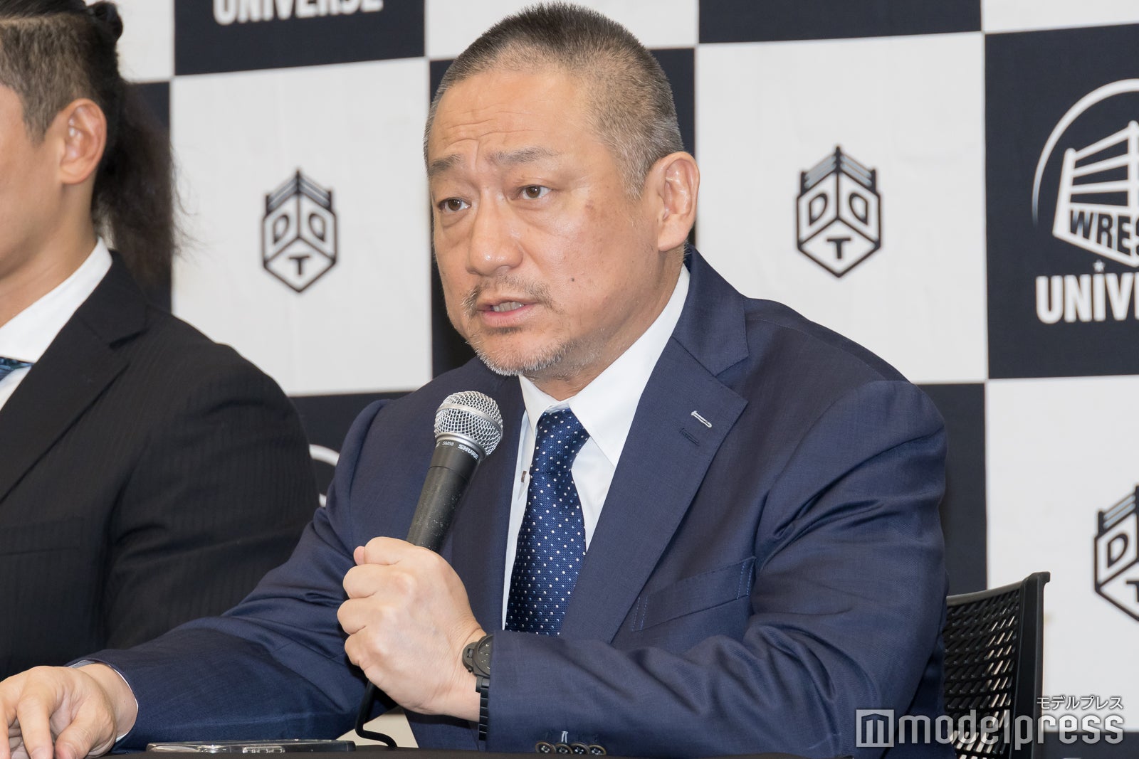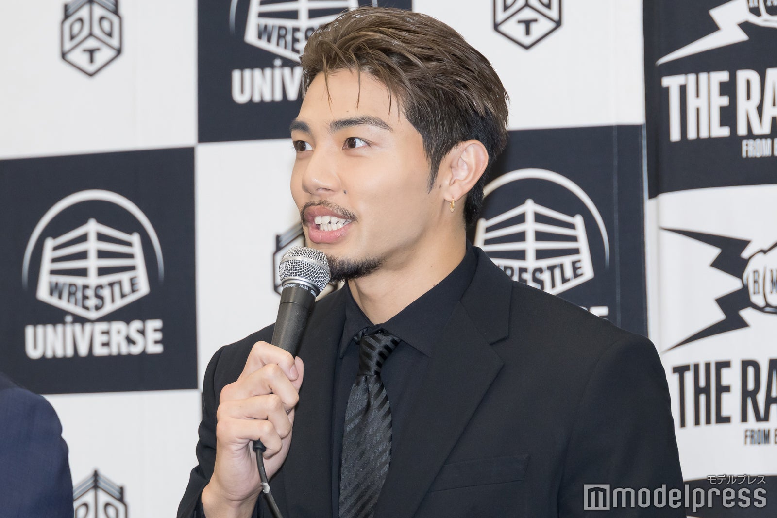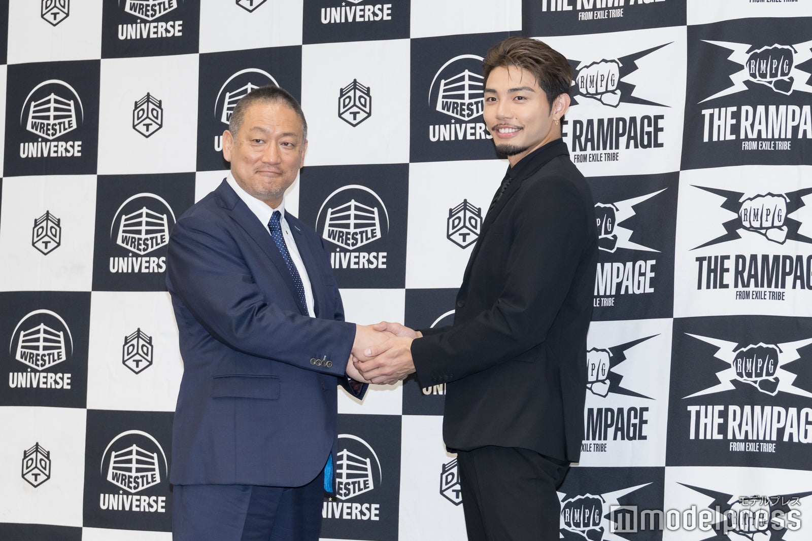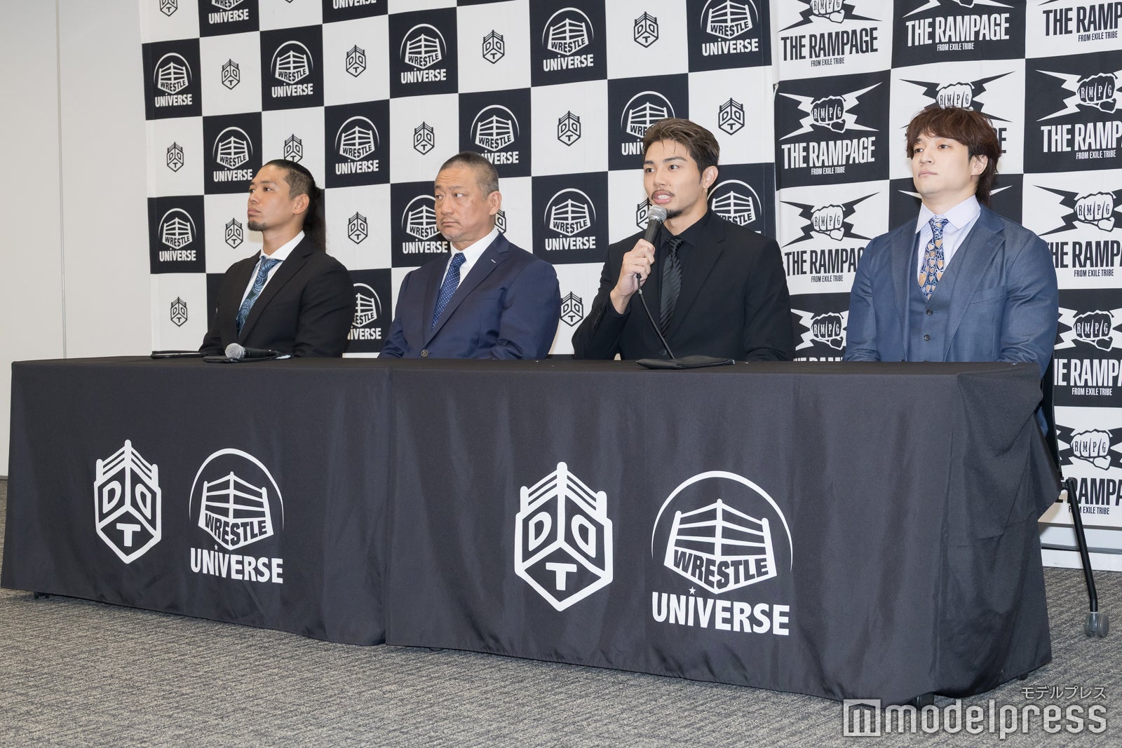 CyberFight代表取締役副社長の高木三四郎氏(「高」は正式には「はしごだか」)は「昨年の2月25日の後楽園ホール大会におけるプロレスデビュー戦での圧倒的なポテンシャルを見まして、これはもう間違いなくプロレス界でもスターになれる逸材だと強く感じまして、是非プロレス界を盛り上げる存在になっていただきたいと思いまして、LDHさんと話を重ねながら、DDTに迎え入れるタイミングをずっとうかがってきました」と経緯を説明。