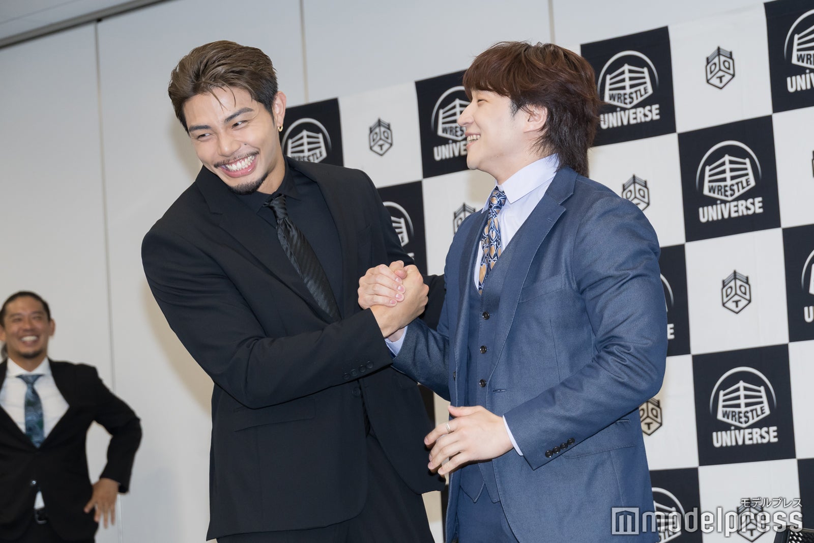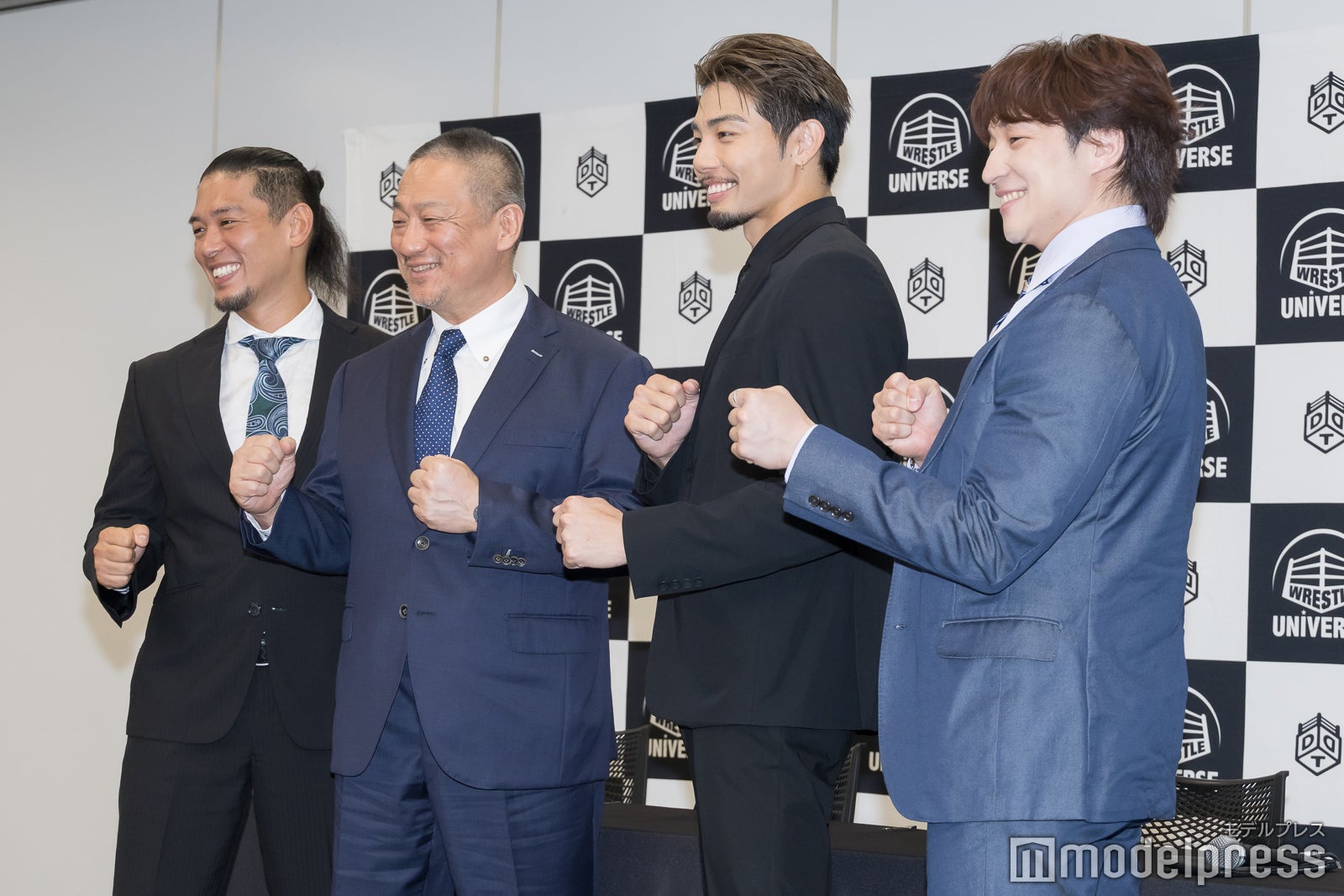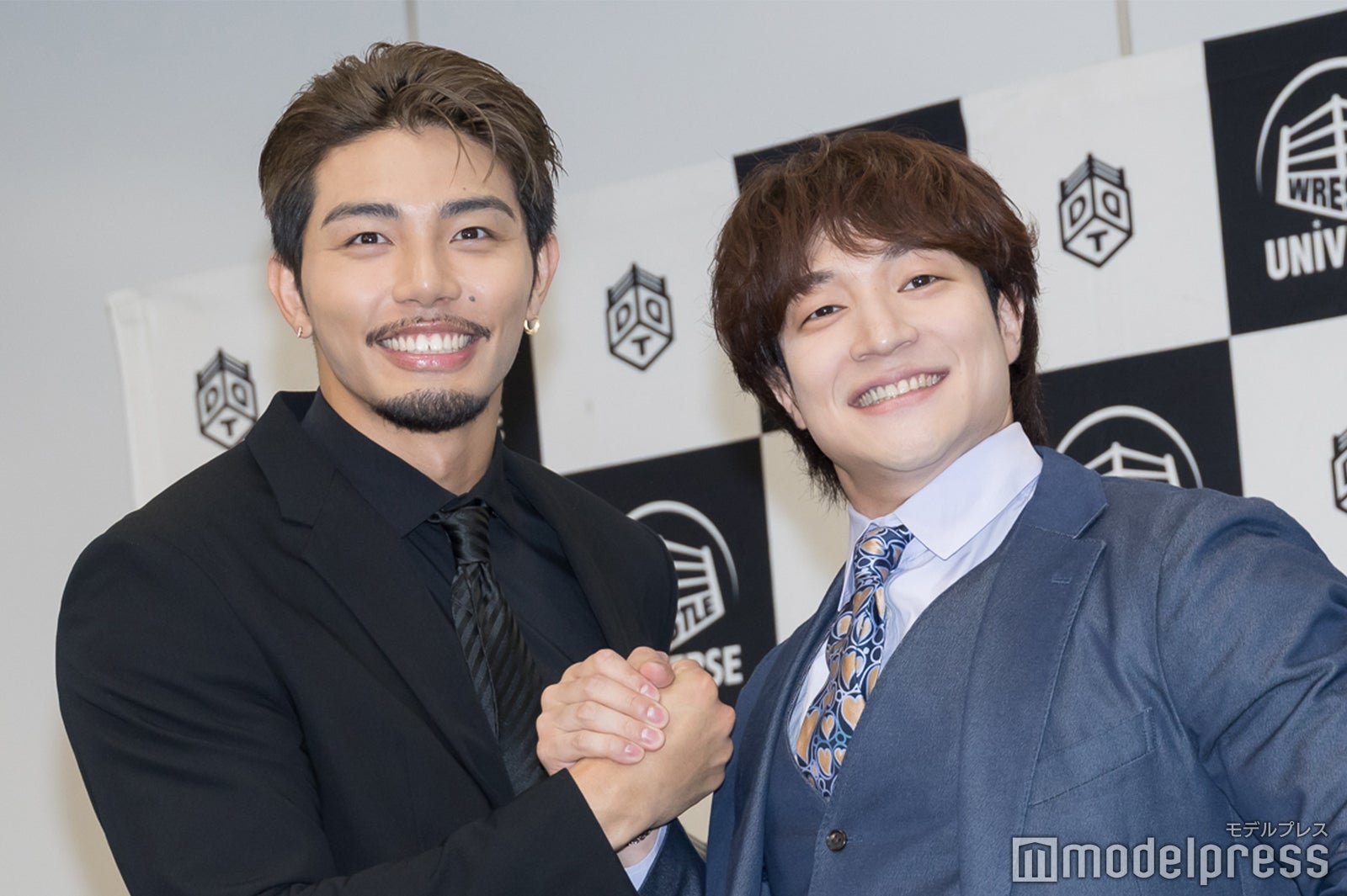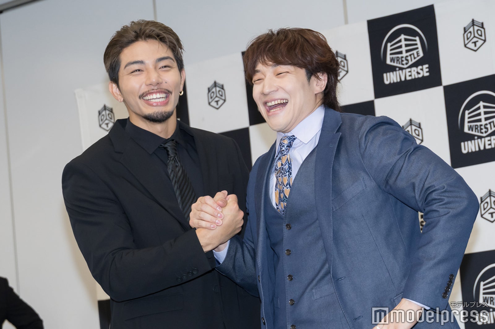 CyberFight代表取締役副社長の高木三四郎氏(「高」は正式には「はしごだか」)は「昨年の2月25日の後楽園ホール大会におけるプロレスデビュー戦での圧倒的なポテンシャルを見まして、これはもう間違いなくプロレス界でもスターになれる逸材だと強く感じまして、是非プロレス界を盛り上げる存在になっていただきたいと思いまして、LDHさんと話を重ねながら、DDTに迎え入れるタイミングをずっとうかがってきました」と経緯を説明。
