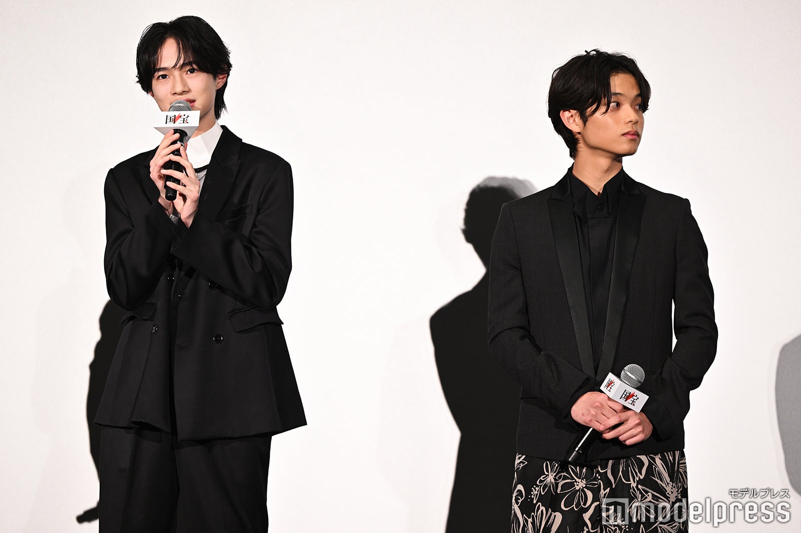 少年時代の喜久雄と俊介を演じた黒川と越山について、吉沢は「すごいですよ。本当に」「僕らがインする前に、少年時代の黒川君が演じる喜久雄の演目を撮影していたんですね。僕はその撮影現場にもお邪魔させていただいたりしたんですけど、色っぽ過ぎて。『え、やばいな…』と思って。少年時代からそのレベルでやられてしまうと、ここ(黒川君)からのこれ(自分)ってことですよね?みたいな(笑)」と絶賛。そして「良い意味で刺激ももらいましたし、メイク中もメイクさんがずっと『黒川君やばいね』みたいな。『これ、大丈夫?黒川君に負けない?大丈夫?』みたいなプレッシャーをずっとメイクさんに与えられてて(笑)。すごい憂鬱でした。お二人とも本当に素晴らしくて。素晴らしい土台を作っていただいたので、そこから頑張ってやらせていただきました」と笑顔で振り返った。横浜は「お二人とも素晴らしかったです。本当に対照的なんですよね。それがすごく出てたし、俊介(越山君)に限っては、愛嬌だったり、放っておけない感じだったり。彼自身もそうだと思うんですけど、生き生きとしていて。一心同体にならなければいけないし、幼少期が軸となるので。自分は現場には行けなかったんですけど、映像とかを見て、彼がそういう風に俊介を堂々と生きてくれたから、自分もそのまま彼の意志を引き継いで、生きられたのかなという風に思います」と感謝を語った。(modelpress編集部)