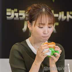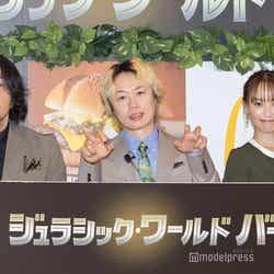 女優の菅井友香が6月10日、都内で開催された「ジュラシック・ワールド バーガーズ」新商品発表イベントに、見取り図の盛山晋太郎、リリーとともに出席。九死に一生を得たエピソードを明かした。