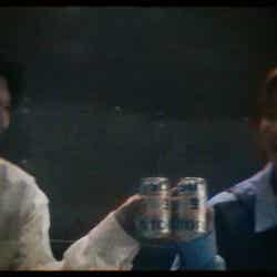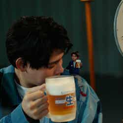 CGキャラクターは編集で合成するため、共演シーンでは実際には見えない小さな自分の分身の姿をイメージしながら演技。「右肩に小さなJUNONさんがいると思って飲んでください」と監督にリクエストされると、JUNONは「こいつも飲んでますか?」「ミニグラスで?」「かわいい~」などとコメント。頭の中で想像を膨らませたり、右肩にグラスを寄せて乾杯するしぐさを披露したりして、あたかもCGキャラクターがその場にいるかのような雰囲気を演出していた。商品を飲むシーンの撮影は、1人ずつ行うことも。JUNONが撮影するターンでは、LEOが「プハー」「おいしいねぇ」と一連の動作を解説して、JUNONを盛り上げていった。さらには、食べ物の話など2人にだけ通じる話題を投げかけ、JUNONのナチュラルな表情を引き出していた。一方、LEOのカットでは「うまい?」「最高?」などと、今度はJUNONがサポート役に。そのおかげか「なんかいつもよりうまく感じるんだけど(笑)」とLEOも満足の魅力的なシーンが生まれた。