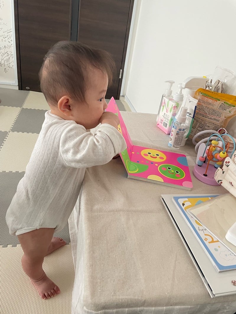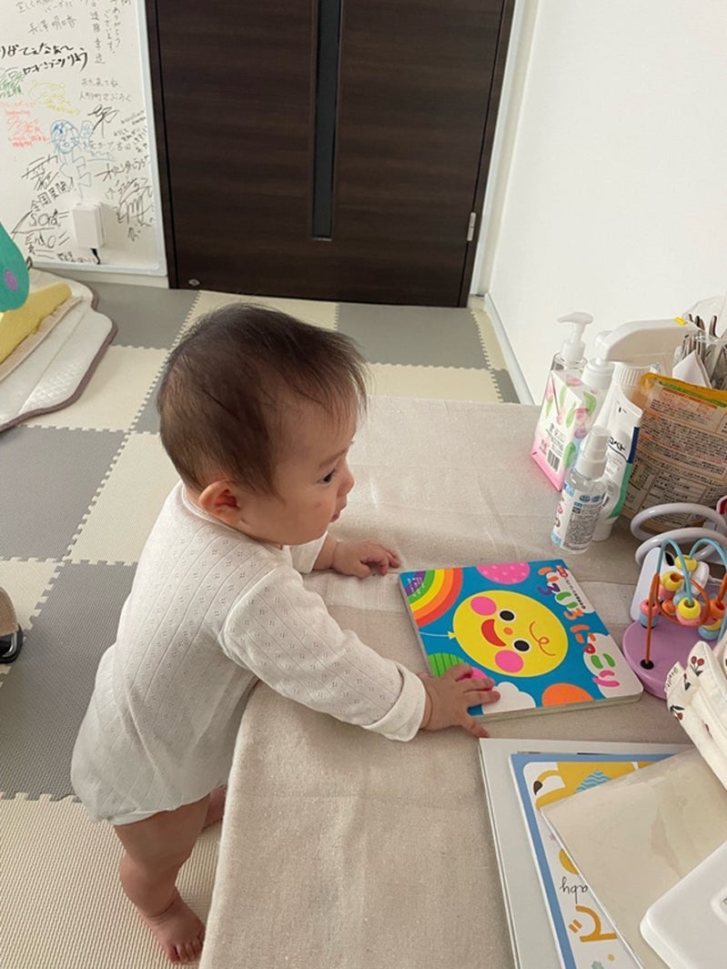 最後は「こちらの本もお気に入りです」と“いろいろにっこり”という絵本を角をかじる娘の姿も。「いつもにっこり」とコメントし、ブログを締めくくった。