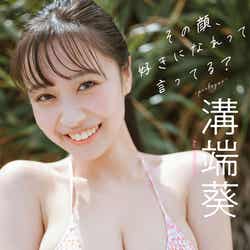 2024年グラビアデビューを飾り、各誌からオファー殺到中の佐伯が同誌に登場。胸元が大胆にあいた衣装でふっくらとした美しいバストを披露している。表紙は溝端葵
