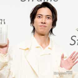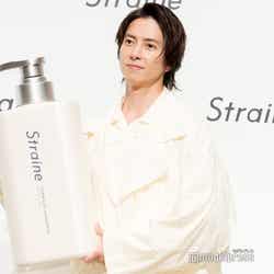 俳優の山下智久が18日、都内で開催された「Straineブランド発表会」に出席。ハプニングに笑顔で対応する場面があった。