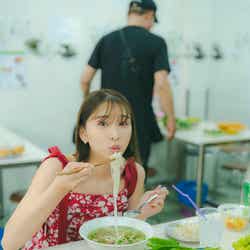 公開された1st写真集「たまゆら」の通常版・限定版2種それぞれの表紙ビジュアルは、いずれも玉井史上最強にキュートな魅力が爆発した“女神級”ショット。通常版は、透明感あふれるうるうる瞳の表情に「スタイル国宝級!」と称されるすらっと美しい脚が際立つ女神級のナチュラル美が目を引くビジュアル。ニット素材のキャミソールにスウェットを羽織ったカジュアルなルームウェア姿で、ヘルシーかつ上品な大人っぽ肌見せを披露している。限定版は、ファンからも絶大な人気を集める持ち前の爽やかでキュートな魅力の女神級笑顔のビジュアル。ベトナムを代表する花の一つであるプルメリアを髪に飾り、夏を感じさせる花柄のキャミソールからのぞく眩しい美素肌で魅了している。