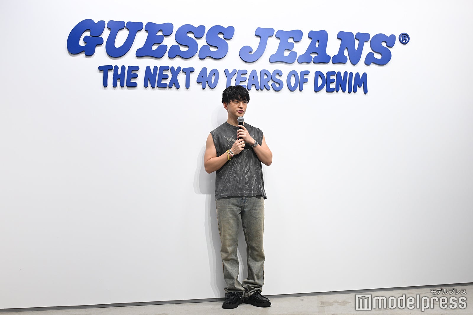 GENERATIONSの佐野玲於が3日、都内にて「GUESS」の新ブランド「GUESS JEANS」表参道旗艦店オープンを記念した特別展示イベント「THE NEXT 40 YEARS OF DENIM」のフォトコールに出席した。