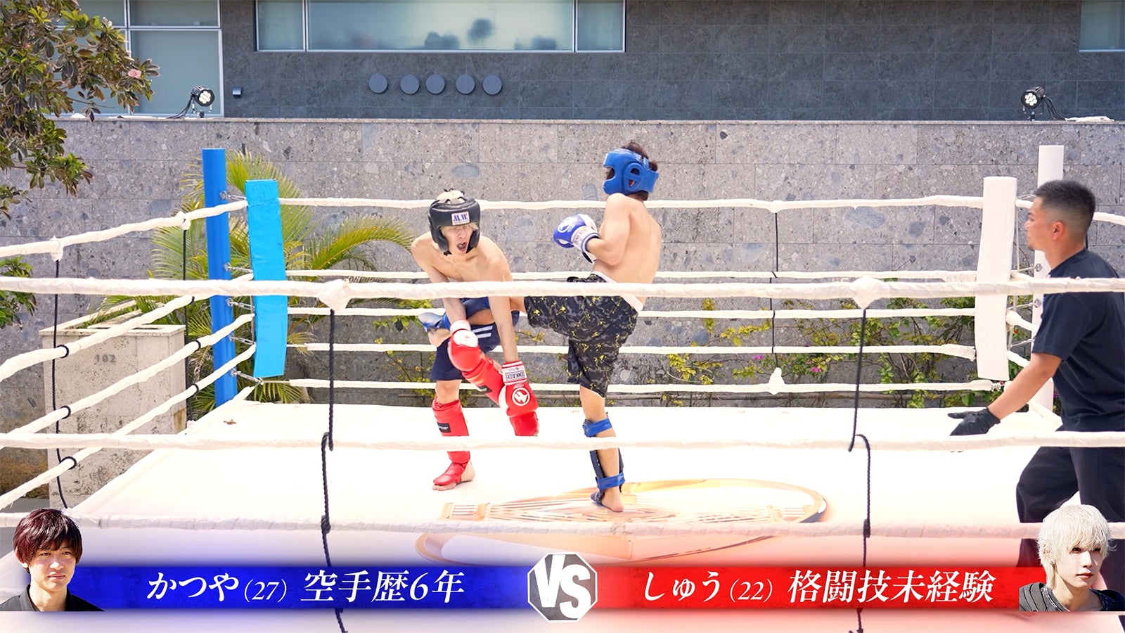 現在3話まで配信中の本作は、1話から第一印象で男性メンバー6人が1人の女性を選ぶという予想外の展開。その女性こそがエステサロン経営者で恋に臆病な清楚系女子・あやめで、出会って早々あやめとの2ショットを巡って男性6人が殴り合いを始めるという、格闘技×恋愛リアリティショーの本作ならではの全く新しいスタートとなった。かっつーもその1人としてリングの上に上がり、空手歴6年という強さでライバルを打ちのめしたのだが、あやめが下したジャッジは…。スタジオゲストのぱーてぃーちゃん・信子が「推し」と公言し、本編でも注目を集めるかっつーだが、果たして彼の恋の行方は?この度公開された動画では、そんなかっつーのYouTubeチャンネルにあやめが登場。番組撮影ぶりの再会となった2人が、恋の舞台・宮古島では叶わなかったデートを楽しむことに?本編では明かされなかった、男子部屋・女子部屋での会話や、試合のジャッジへの切実な思いなどの裏話から、配信後の周りからの反響などトークが炸裂。さらに宮古島滞在中、かっつーがまさかの悲劇に襲われていたことを赤裸々告白している。