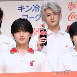 キャンペーンタイトルに合わせて“夢中全開”で挑戦したいことを聞かれると、FUMA(フウマ)は「僕は夢中全開でキャンプに挑戦してみたいと思います。元々キャンプに興味があったんですけど、この夏、汗をかきながらテントを立て『暑いな』って思った時にこの『キン冷えコーク』を飲んだら最高なんじゃないかなと思ってキャンプに挑戦したいと思います」と意気込んだ。HARUA(ハルア)も「僕もちょっと自然繋がりなんですけど、ゴルフに今年の夏は挑戦したい」とアウトドアな趣味への意欲を明かした。「本当にただやってみたいっていうよくびょう、よくびょう、欲望だけなんですけど…」と何度も噛んでしまうハプニングがあると、その様子を見つめていたK(ケイ)が「すいません…。ちょっとアジアツアー中なもので、僕たちよく日本語を噛んじゃうんですけど、ちょっと大目に見ていただければなと思います!」とフォロー。HARUAも続けて「グローバルでごめんなさい」と謝り、笑いを誘っていた。(modelpress編集部)