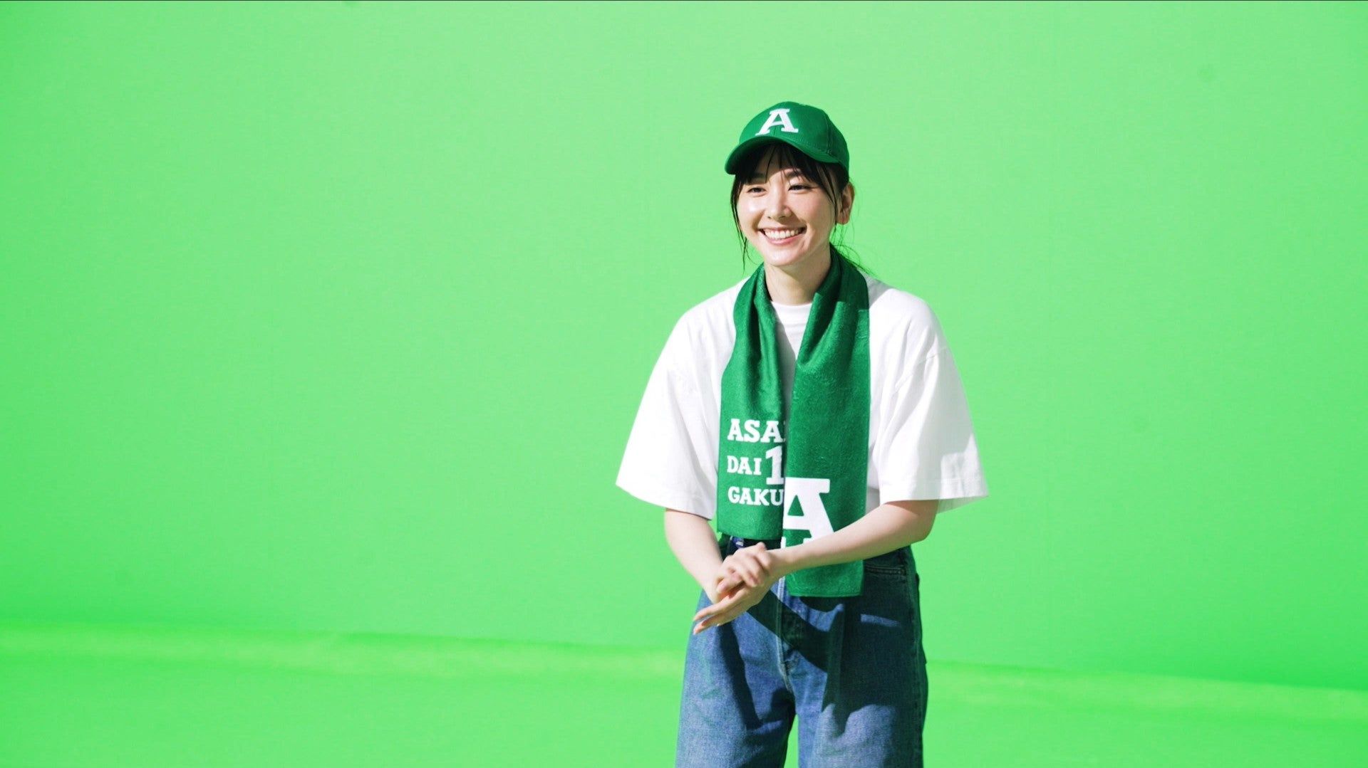 CMキャラクターを2009年より務め、2025年で17年目を迎える新垣。今回のCMは春にオンエアされた「16チャージ!交差点」編に続く、懐かしの“替え歌”楽曲シリーズ・第2弾となる。また、今回の楽曲もanoが担当。懐かしの楽曲「タッチ」を替え歌で歌う。まずグラフィック撮影のためスタジオに現れた新垣は、緑の野球帽に白いTシャツ&デニムのスポーティな姿で登場。キャップには大きく「A」の文字が。新垣曰く、「Asahi」の「A」とのこと。普段の撮影ではあまり見かけない、野球帽姿の新垣だった。