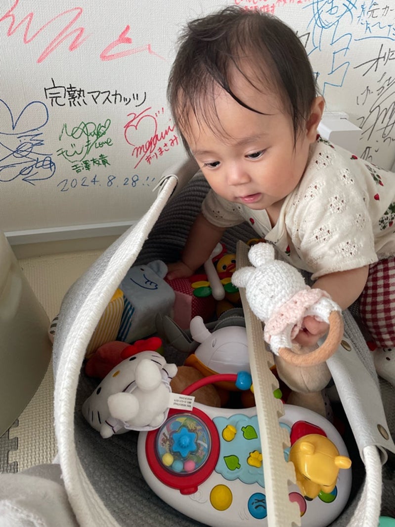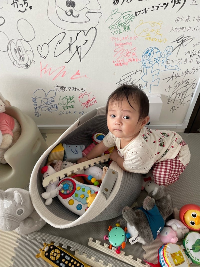 山本は「数ある中から」と題してブログを更新。たくさんのおもちゃが詰め込まれたおもちゃ箱の写真とともに「にこりさんが、おもちゃ箱に手を入れゴソゴソとやっているところを撮影するのに成功しました」と切り出し、ぬいぐるみや音が鳴るおもちゃ、布絵本などに囲まれながら、お気に入りを探す娘の姿を複数枚公開した。「ガチャガチャ出しながら、引っ掻きだしながら、撮影に気づいた表情です」とつづりながら、「本日のおもちゃを決めたのでしょうか 本日のおもちゃを決めた模様です!これです!このうさちゃんです!」とぬいぐるみのラトルを選び、手に持って満面の笑みを浮かべる娘の姿も披露。「パパ本圭壱が近づくと、興奮状態です」といい、「ほらーーーーーっ!どうだーーーーーっ!これでもかーーーーーっ!」と娘とのにぎやかなやりとりを写真とともにコミカルにつづり、満面のどアップ自撮りで“パパの存在感”もアピールした。