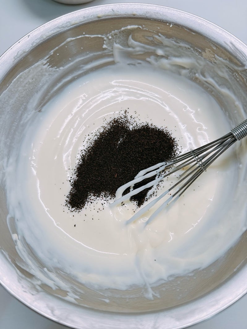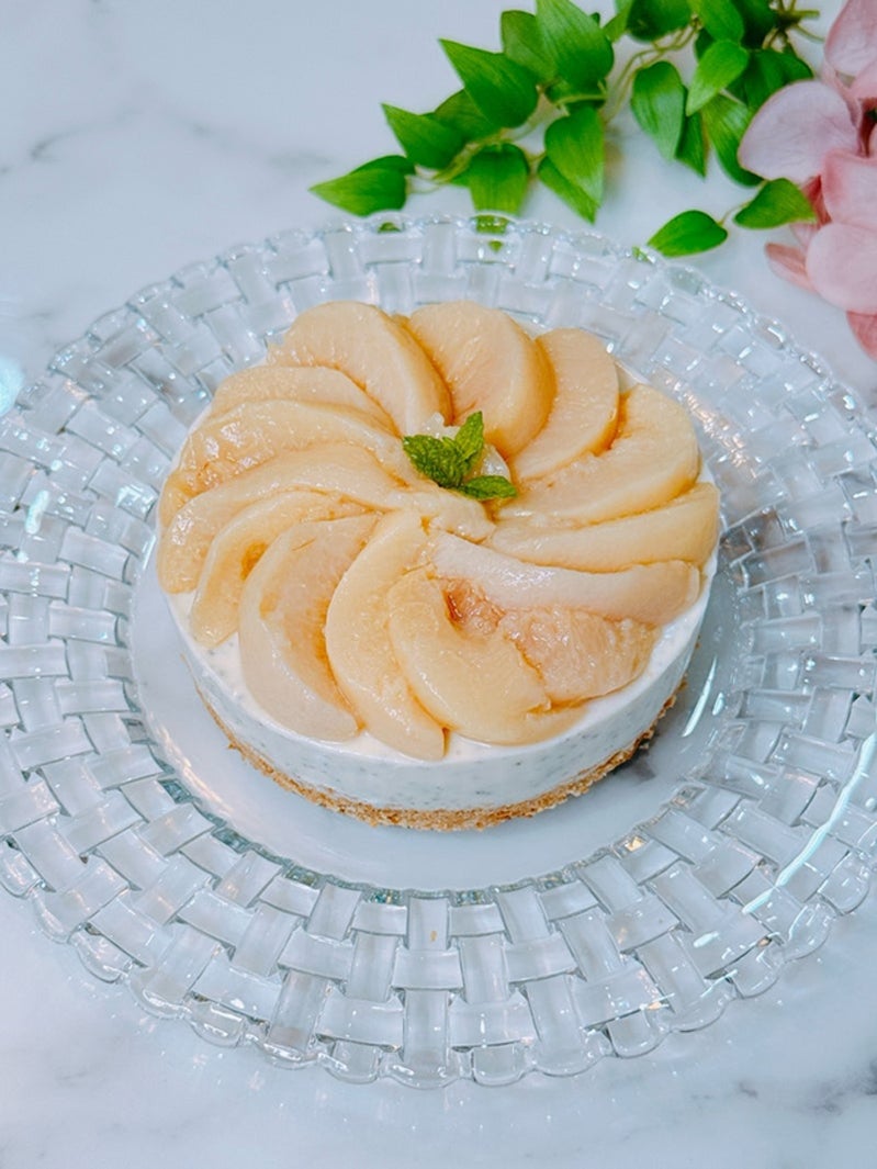 さらに翌日には、クリームチーズを使用した「桃とアールグレイのチーズケーキ」作りをしたことも報告。「混ぜて冷蔵庫で固めるだけ簡単スイーツ」「チーズケーキの上にはコンポートの桃を乗せました」とつづり、紅茶の茶葉を練り込んだムースにクラッカーベースを敷き、仕上げには桃のコンポートを美しく盛り付けた華やかなスイーツを披露した。