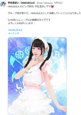 アイドルグループ・HAKUSULAの公式X(旧Twitter)が22日に更新され、宇佐美まいの解雇を発表した。