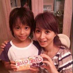 さらに、「親子ショット」と題したブログでは、長男の写真が大きくプリントされた特注のバースデーケーキを笑顔で持つ長男と、愛犬・リルを抱えた渡辺との親子ショットを公開した。