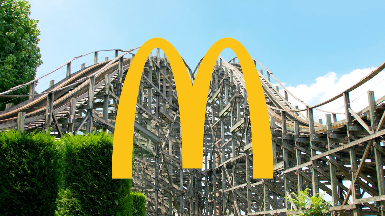木製コースター「エルフ」のコースの形があのロゴのかたちに似ていなくもないことから、マクドナルドとコラボレーションした奇跡のセットメニューが誕生。今回のCMで岡田は歌を披露した。誰もが聞いてみたい「園長」の歌。それがついに披露されることにスタッフ一同喜びに打ち震えながら、一音も聞き漏らすまいと固唾を飲んでモニターを見つめていたという。真っ青な空とプール。遠くに見える「園長」の背中。最高のライブ空間。とその時、振り向きざまに、「園長」の短い「ぱっぱー」。次の瞬間まるでやまびこのように、「園長」の「ぱっぱー」が頭の中にこだまするのを感じられたそう。