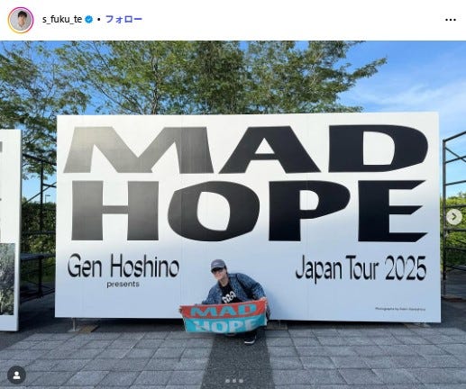 俳優の鈴木福が24日、自身のInstagramを更新。音楽家で俳優の星野源のライブに行ったことを明かした。
