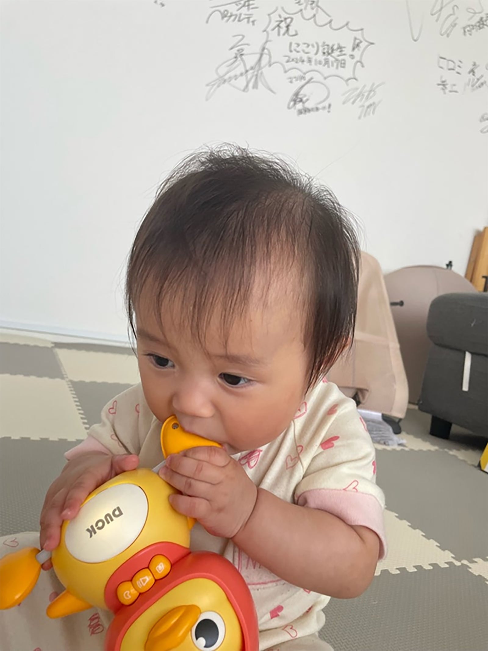この日、山本は「あひるさん頑張って」と題してブログを更新。「にこりさん お気に入りのあひるさんです」といい、電動ロボットの“アヒルママ”の写真とともに「可愛らしいですね」と紹介した。続けて「にこりさんが大好きでございまして好きすぎるが故にこんな感じになっております」とユーモアを込めながら、“アヒルママ”の足をハムハムしている愛らしい娘の連続ショット公開し、「大好きなあひるさんとにこりさんは仲良しこよしです」とつづった。