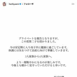 蜂谷晏海、第2子妊娠を報告 夫はスピードワゴン井戸田潤「より一層賑やかになるのが楽しみ」