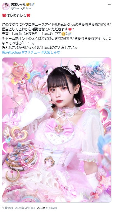 【追記訂正】ゆりにゃプロデュースアイドル・天宮しゅな、性被害についてコメント 被害届も提出「許可なんてする訳ない」「好意が一切無かったのだけはわかってほしい」