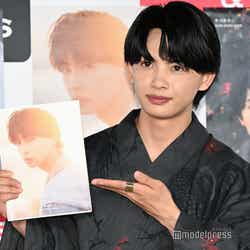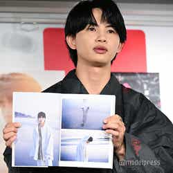 本作の発売を迎えた心境を聞かれると「僕が1から全てこだわらせていただいて、実際形になったものを見た時に、率直にすごく嬉しかったです。何より早く僕を応援してくれてる人たちや僕の周りの人に見てほしいなっていう思いがありました」とコメント。自己採点を求められると「僕だけじゃ成り立たなくて、たくさんの方が関わってくださったので、100点超えて120点で!」と自信をのぞかせた。お気に入りには海で撮影したカット。「儚さが全面に出ていて、あと写真の質感もすごく好き」と理由を説明し、「たくさん撮らせていただいて、選ぶのが大変だったので、奇跡の1枚になったかなと思って選びました!」とアピールした。