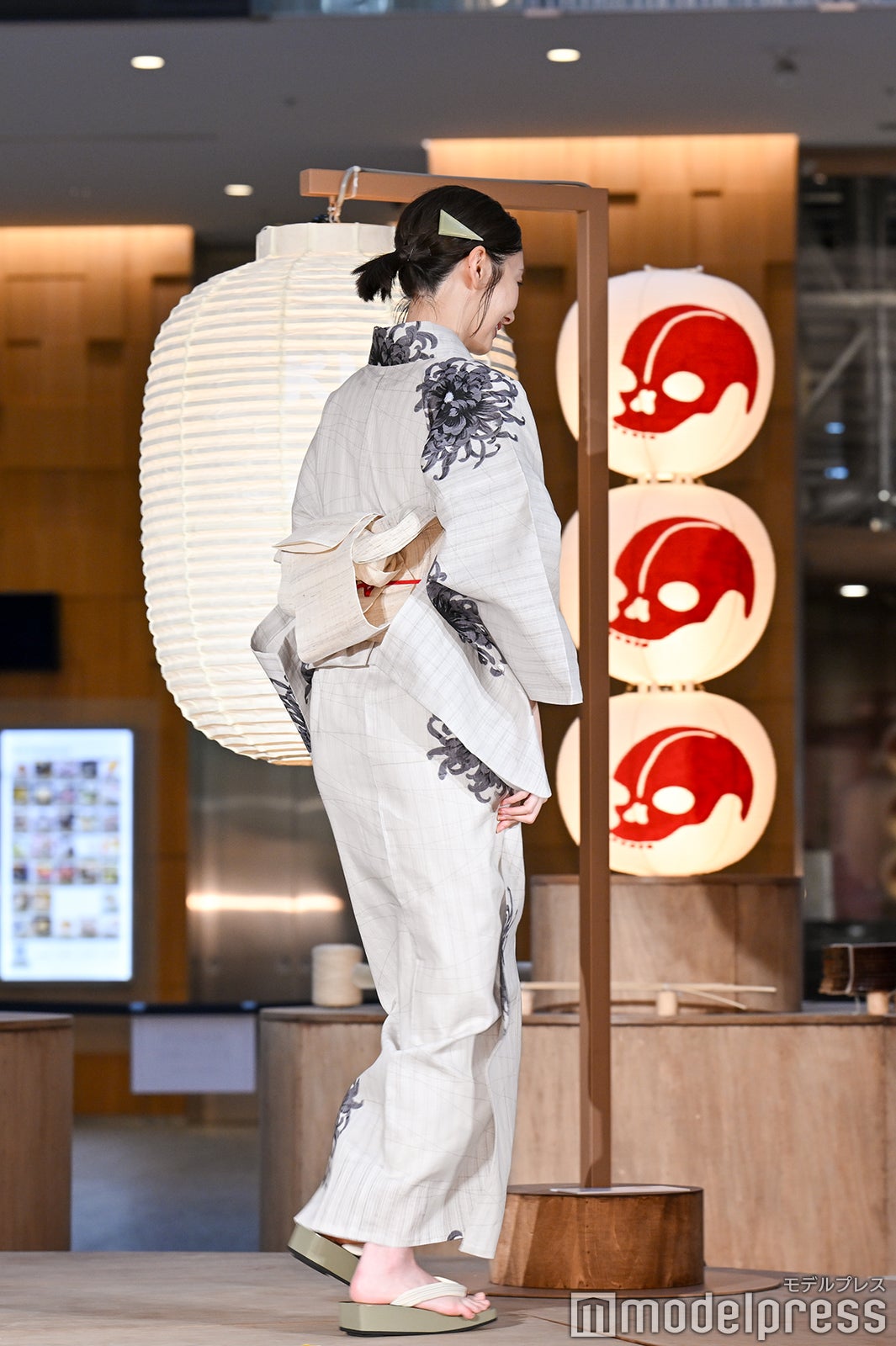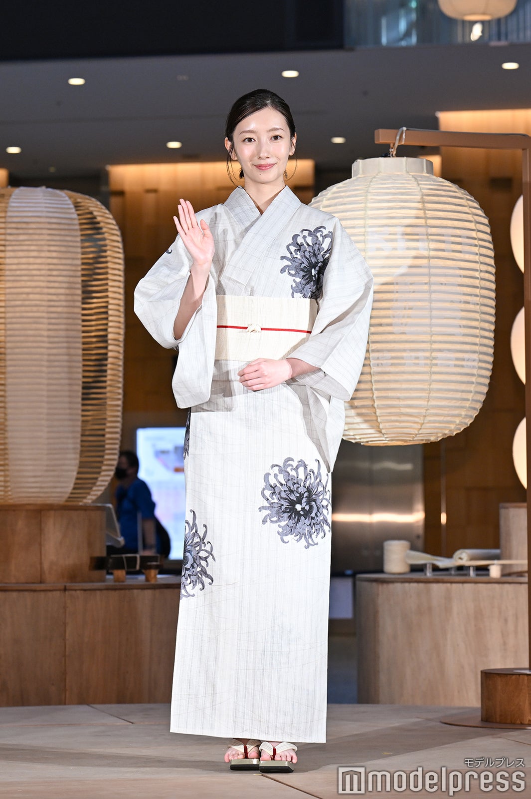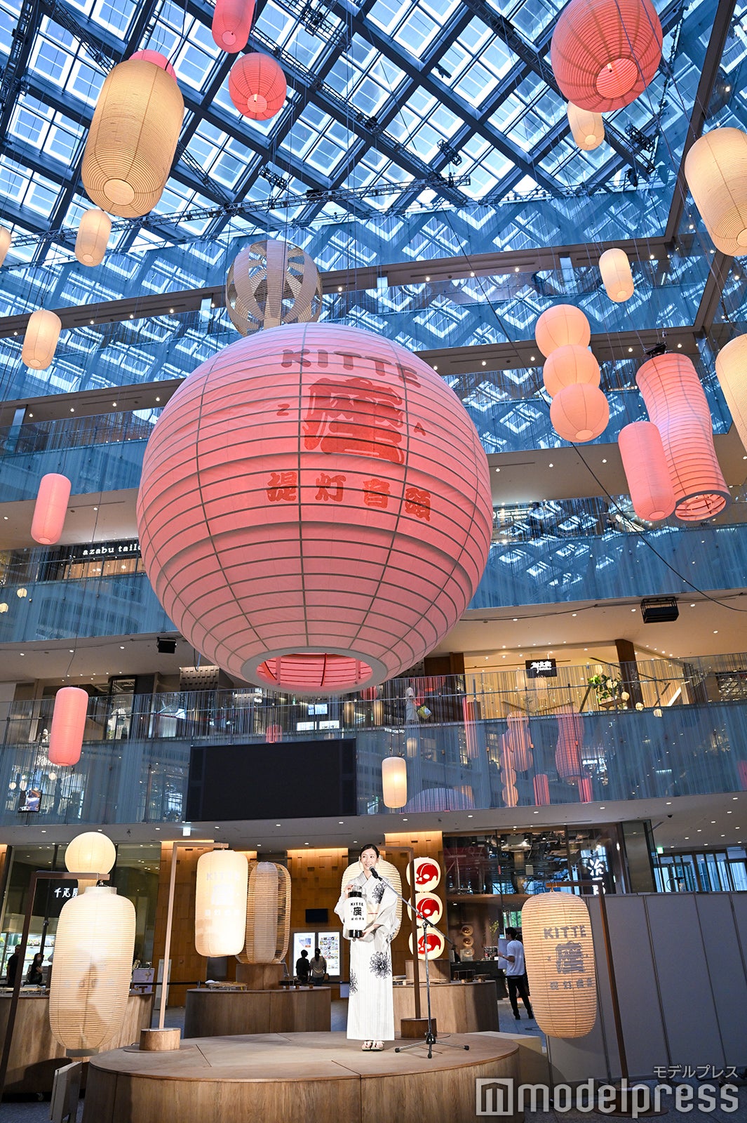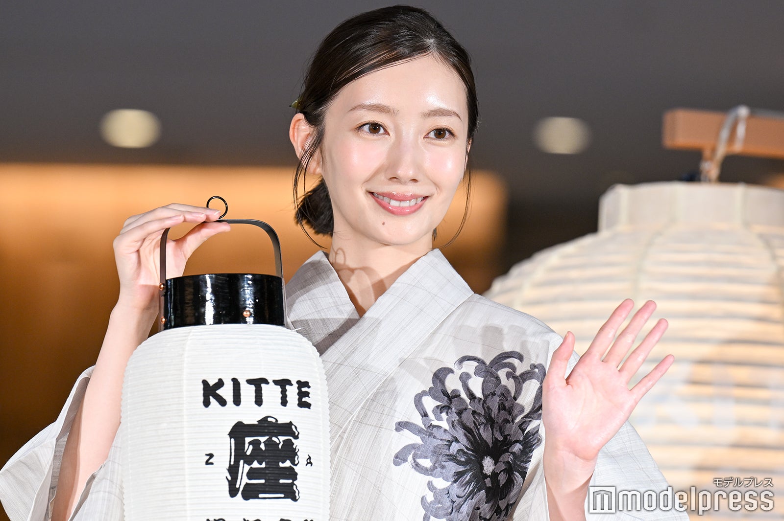 JPタワー商業施設「KITTE」では、夏の賑わいが感じられる「祭り」をイメージしたイベント「KITTE座 提灯音頭」を8月5日から31日まで開催。「提灯がおどる、夏がはずむ」をテーマに、日本の夏を象徴する「祭り」をイメージした空間で、ふわりと踊る提灯の下、夏の賑わいを楽しむことができる。シックで涼しげな浴衣姿で登場した波瑠は「実はこの夏初めての浴衣で、とてもうれしいです。提灯が華やかな空間だと聞いたので、私は少し色味を抑えてシックに着ているんですが、お気に入りのポイントはここ(帯留め)のアンティークの金魚です。(浴衣の)柄が大きいので、大人な着こなしができているかなと思います」と笑顔で語り、丸の内の商業施設で浴衣を着ている点については「とても洗練された空間に来ているなという実感がありまして、私は出身が下町ですので、浴衣を着ると浅草であったりを思い浮かべてしまうんですが、浴衣は最近では夏のおしゃれの1つかなと思っていますので、ぜひ電車に乗ってお出かけをして、浴衣を楽しんでいただくというのもいいんじゃないかなと思います」と勧めた。