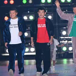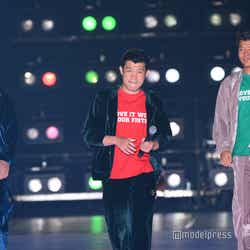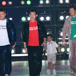 3人は色違いのベロアジャージとTシャツを着用し、「3150×LUSHBOMUスペシャルステージ」にシークレット登場。和毅は子どもを抱っこしながら笑顔で歩き、ランウェイトップでは、3人で力強いポーズを披露していた。「関コレ」テーマは「For U」