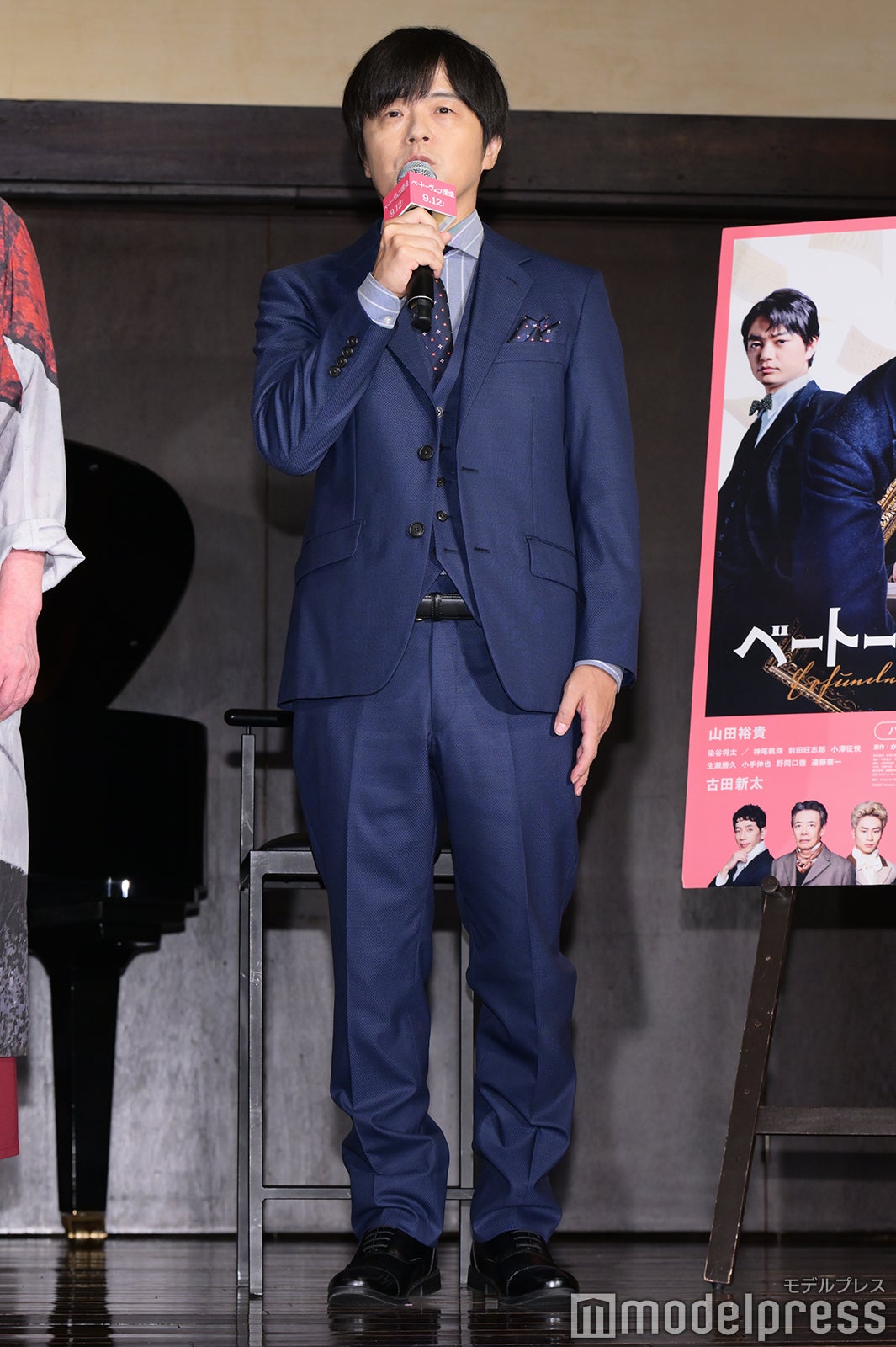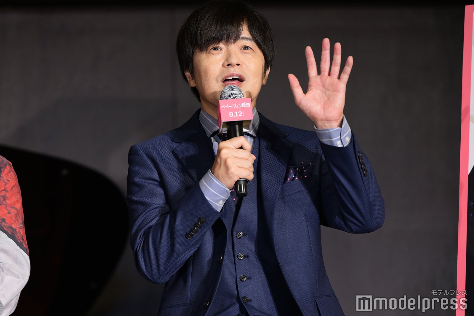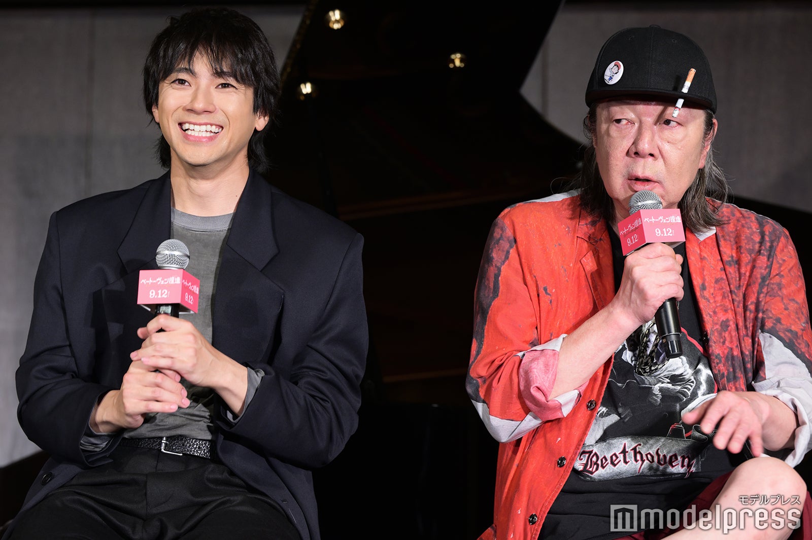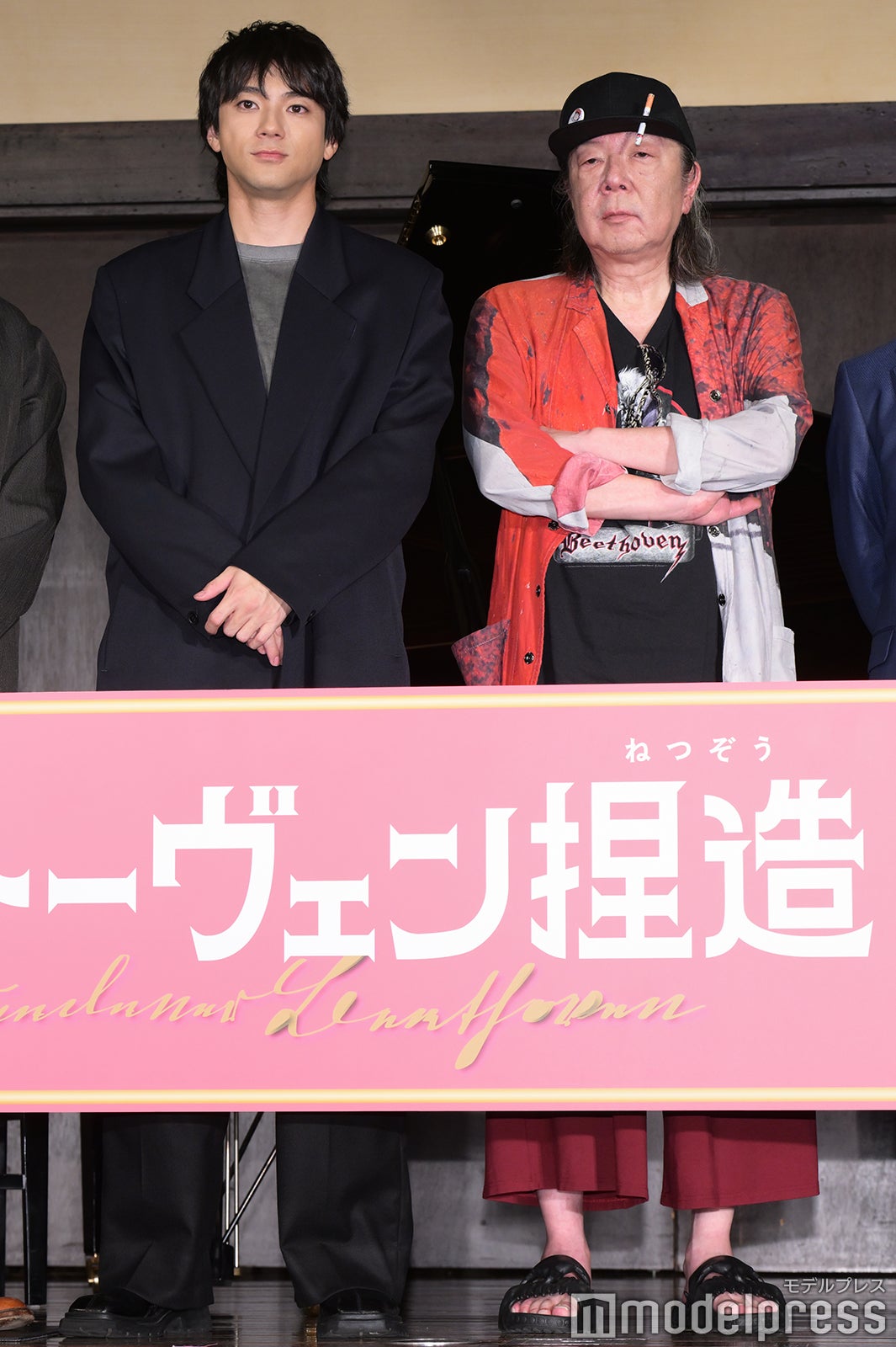 本作は、歴史ノンフィクションの傑作『ベートーヴェン捏造 名プロデューサーは嘘をつく』(かげはら史帆著/河出文庫刊)の実写化。忠実なる秘書・シンドラー(山田)が、憧れのベートーヴェン(古田新太)を絶対に守るという使命感から、彼の死後に、「下品で小汚いおじさん」から「聖なる天才音楽家」に仕立て上げるため奔走する姿を描く。この日は古田、バカリズム(脚本)、関和亮監督も出席していた。主演の山田は、オファーや役作りについて「僕が持っていたベートーヴェンのイメージって、小学生の子でも中学生の子でも思えるような、『たぶん天才だったんだろうな』くらいの今年か知らなかったんですけど、原作を読ませてもらって、バカリズムさんの脚本も読ませてもらって。もしかしたら、ベートーヴェンってこんな人だったのかもしれないっていうのを、作り上げちゃったのが僕になってくるので」とコメント。「準備したことと言うと、ベートーヴェンの映画で使われる予定のある曲は全曲を一応網羅して。ベートーヴェンを日々流し…それで理解できるわけではないのかもしれないんですけど、自分の中に音楽を刻みながら」と振り返った。