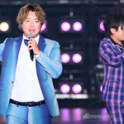同イベントのMCを務める2人。シュウペイは鮮やかなブルーのグラデーションが目を引くスーツスタイル、松陰寺は水色とピンクのチェック柄が印象的なスーツを着こなし、存在感を放った。ファッションステージの合間には、2人がそれぞれランウェイを歩く時間も。2人は、大きく手を振りながらランウェイトップめがけて歩き、シュウペイはお決まりの「シュウペイでーす」ポーズを、松陰寺はボードなどのファンサービスに笑顔で応えていた。