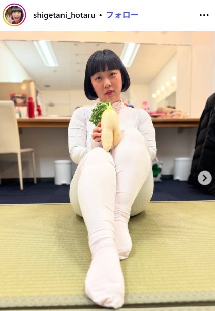 重谷は「先ほど、テレビ和歌山『わかラ部』生放送にてご報告させていただきましたとおり、この度、私、重谷ほたるは舞台関係者の方と入籍いたしました」と報告。「私の太もものように太い太い赤い糸で結ばれた私たちなので、私の太もものように逞しく逞しく支え合っていきながら、私の太もものように大きな大きな愛を育んでいきます!」とつづっている。「あーーん!幸せすぎて震える〜(太ももを震わせセルライトを揺らす)ずっーと幸せでいれますよーに!パンパン!(太ももで合掌し、内太ももを強く2回打ち鳴らす)」とユニークに幸せを表現した。