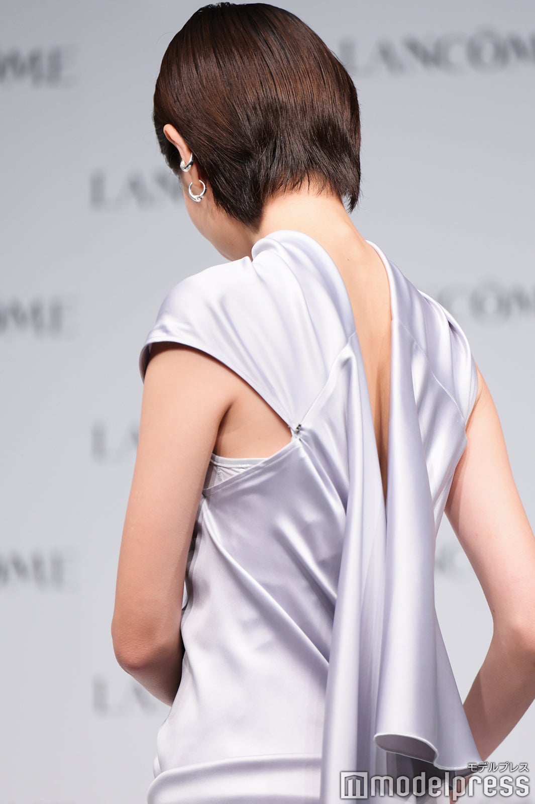 女優の戸田恵梨香が25日、都内で開催された「ランコム」新製品“回復科学発想の化粧水”「ジェニフィック アルティメ エッセンス ローション」ブランドムービー発表会に出席。美しい背中が際立つドレス姿を披露した。