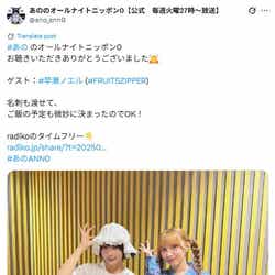 FRUITS ZIPPER(フルーツジッパー)の早瀬ノエルが26日、歌手のあのがパーソナリティを務めるラジオ番組「あののオールナイトニッポン0(ZERO)」(ニッポン放送/毎週火曜深夜3時〜)に出演。自身の名前に言及する場面があった。