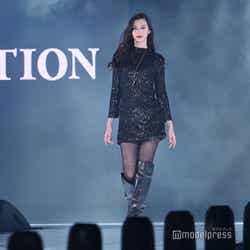 オープニングのファッションショーは「TGC 2021 A/W」からTGC SPECIAL COLLECTIONを手掛ける野口強氏によるスタイリングショー。ここ10年のTGCを彩ってきたTGCのレガシーを継ぐ中条、池田、三吉の3人がスモークの中から幻想的に登場すると、会場は大きな歓声に包まれた。ブラックのスパンコールドレスに身を包みウィンクした中条、ゴールドボタンがアクセントのドレスで髪をかきあげた三吉、Vネックの艶やかなドレスで鋭く正面を見つめた池田の順に歩き、抜群のスタイルで圧巻のオーラを放っていた。