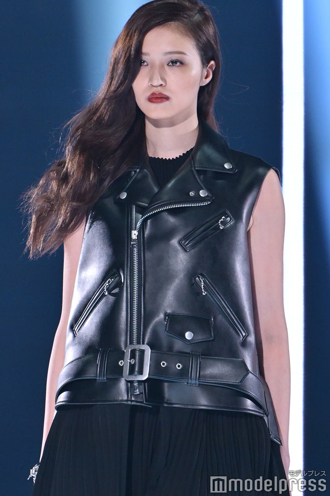せいら、レザーベスト×シースルースカートのトレンドスタイルで美脚際立つ【TGC2025A/W】