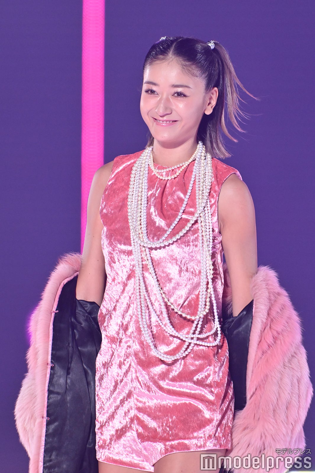 みちょぱは、ピンクの光沢が特徴的なベロア生地のノースリーブで登場。ファーコートと合わせたミニ丈のオールインワンからは美しい脚が輝いた。ギャルのイメージが強いみちょぱが今回はハーフツインヘアに大胆なパールのネックレスを合わせ、ガーリーな雰囲気に。新たな魅力で会場を沸かせた。「TGC 2025 A/W」テーマは「BEYOND TOGETHER」