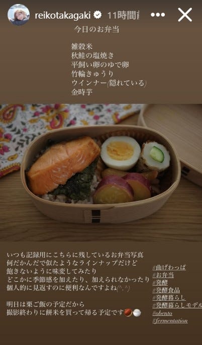 モデルの高垣麗子が9月8日、自身のInstagramのストーリーズを更新。手作り弁当の様子を公開した。