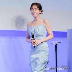 田中は、デコルテをのぞかせたブルーのドレス姿で登場。田中のデコルテをスクリーン代わりにCMを投影するという企画が紹介されると、田中は「最初にお話をいただいた時に『どういうこと?』って、ちょっといまいち理解が追いつかなかった」と笑った。現場では実際に田中のデコルテに文字を投影し、その後、CMを映し出した様子も会場のモニターで上映。田中は「意外と難しいんですよ」と撮影を振り返り、「たぶん皆さんが想定していたよりも私のデコルテの面積が小さくて、何度か映像を縮小するということをやっていただいて、ちょうどいい大きさにすることもちょっと難しかったりとか、結構大変だったんです」と語った。